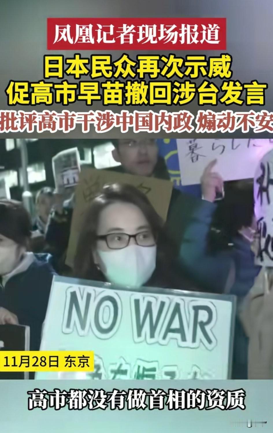凤凰卫视真的牛, 记者在日本现场报道, 日本民众发起了反对高氏早苗的游行, 凤凰卫视记者现场采访, 传回了的第一画面, 都说日本现在很危险, 这女记者是真的勇敢, 本民众表示高市早苗没资格做首相, 民众敦促高市早苗收回涉台言论, 批评高市干涉中国内政煽动不安, 可以看出日本民众还是非常清醒的, 知道日本在东亚曾犯下累累罪行, 坚决反对战争, 许多日本民众举着中日友好的牌子, 他们是不想要战争的! 如今的中国不是满清, 在武器,军队各方面碾压日本, 日本民众又不是傻, 大家觉得高市早苗会如何收场? 高市早苗内阁 高日早苗 高市早苗演技派 高市早苗下台 高士早苗