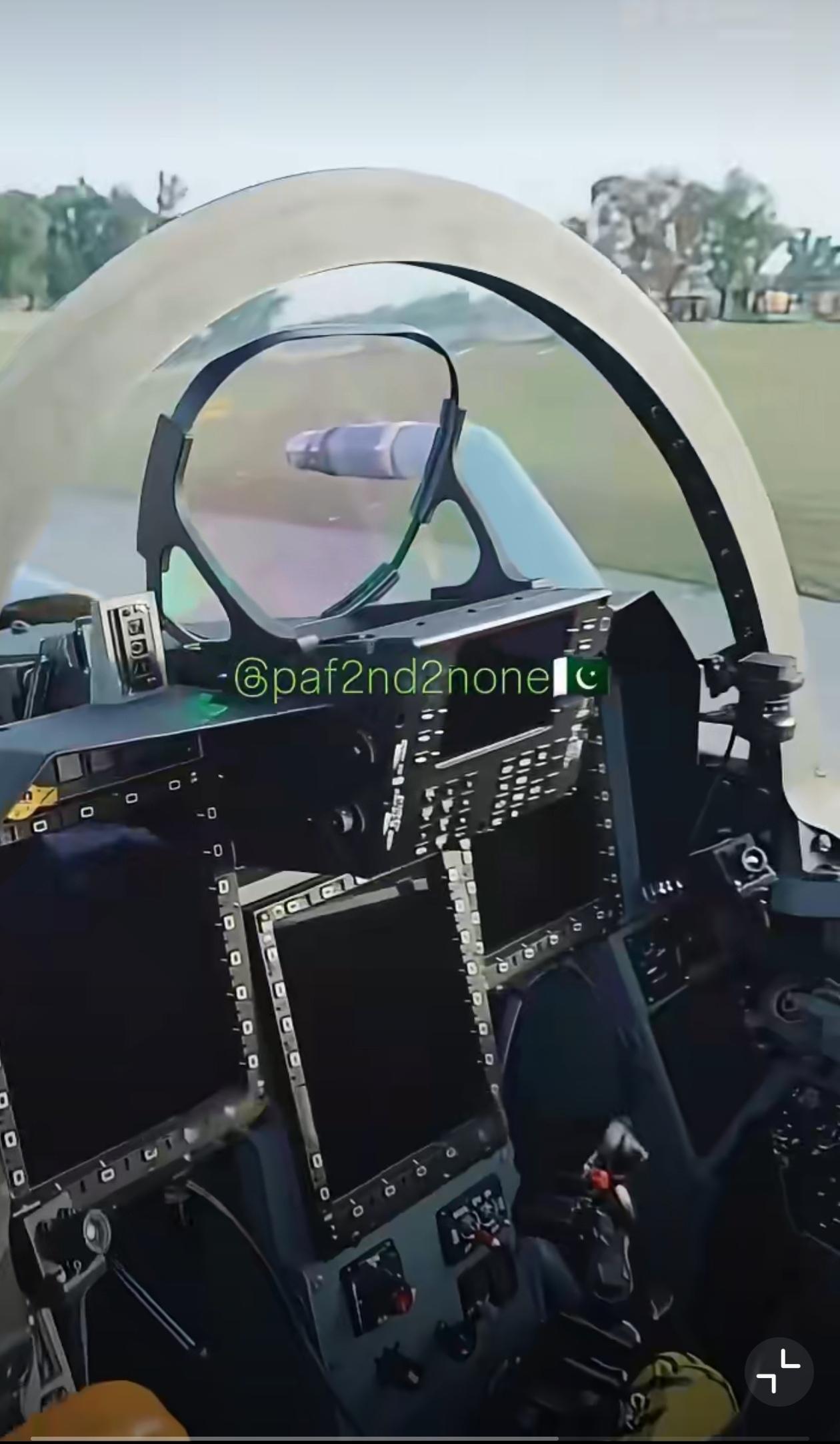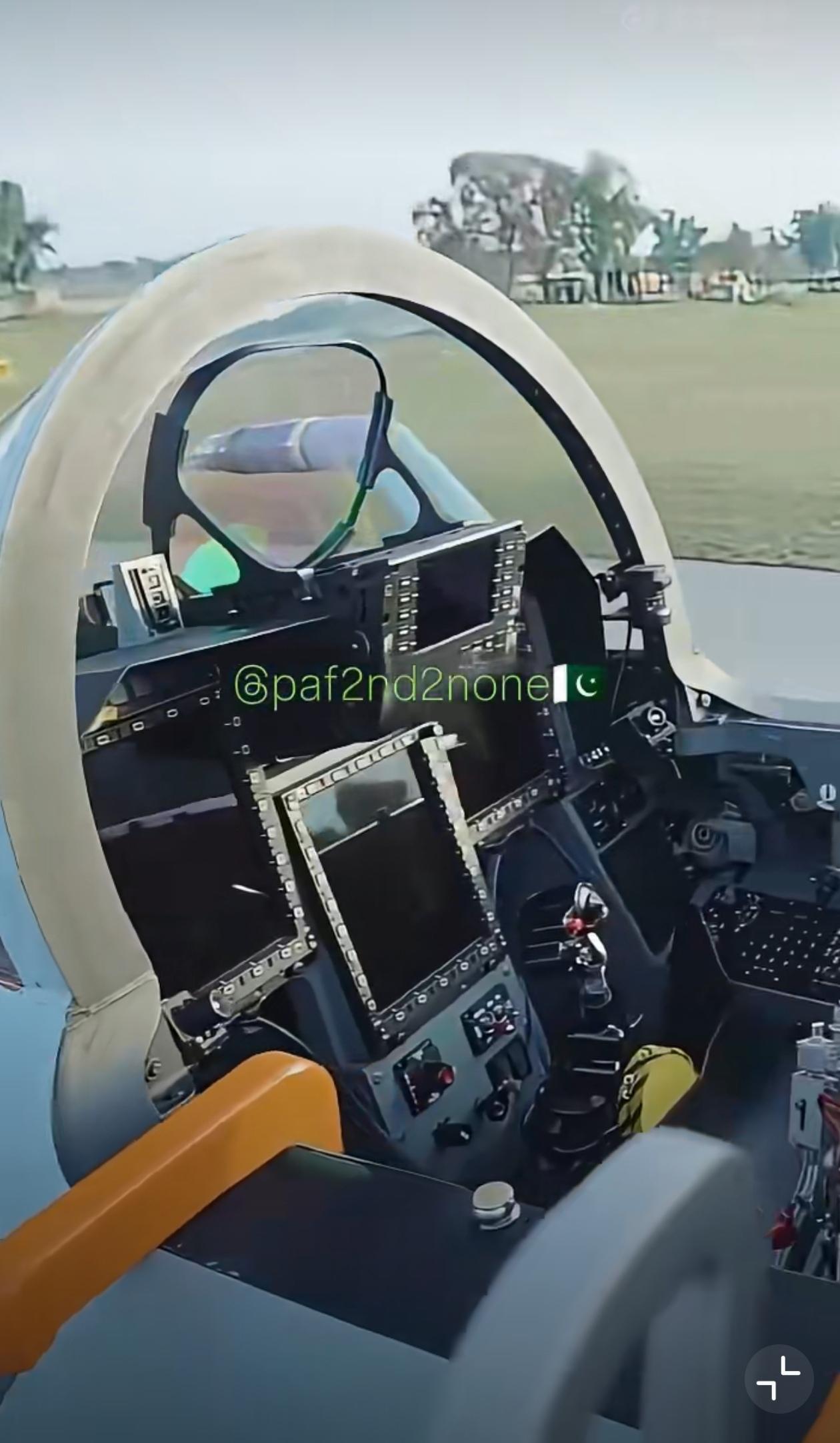 两张巴基斯坦装备的歼十CE的座舱清晰照片,经典的三代、三代半战斗机的一平三下布局,由于歼十C采用的是中置操纵杆,因此没有类似于阵风或者F-16Block70那样的四下,但是正前方控制板UFCP的显示屏幕尺寸较大,也可以看作是四个下视显示器。新一代的主力机型,大部分改为32:9的超宽屏幕了,这个区别不大。