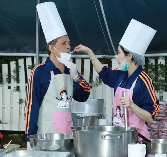 诗妮娜和泰王做饭,小娇妻喂老丈夫吃东西,这恩爱秀得接地气。苏提达王后大气,老公和妾秀恩爱,她也不生气。