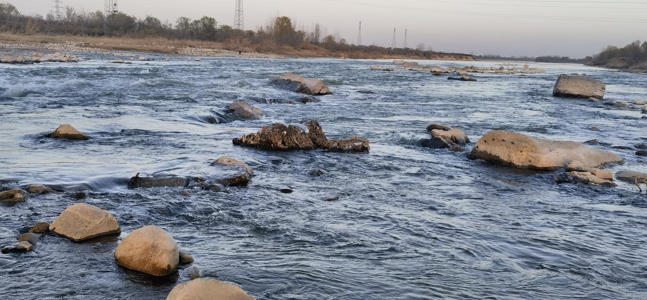 分享手机随手拍故乡.渭水冬韵。(霸王河入渭河口处)