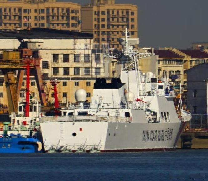 海警的最新大玩具,喷水推进的巡逻舰,已经刷号,准备入列了。最抓人眼球的肯定是屁股上那四台喷水发动机,不知道这个家伙能够跑多快?能跑过大飞吗?主桅杆上有两台雷达,长方形的是机扫加相扫的对抗对海警戒雷达(图3),圆形的是76毫米舰炮的火控雷达。期待2104在南海追着那帮猴子打屁股。