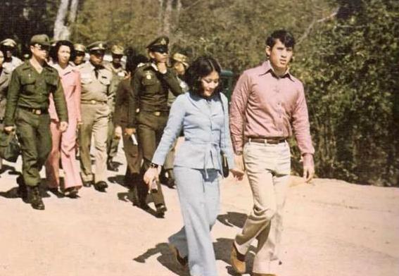 泰王的外甥女和丈夫在秋千上笑得老开心了,一看就是陷入爱河中的人儿。年轻时的泰王和颂妃不一样,他牵着颂妃的手,挺吝啬笑容的。
