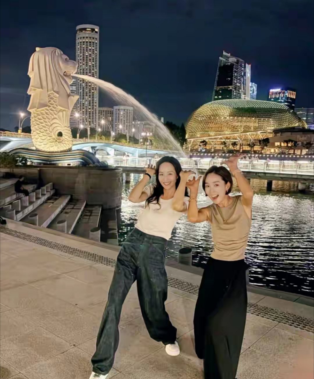 43岁张钧甯和闺蜜一起到新加坡旅游,她的状态真好,身材苗条