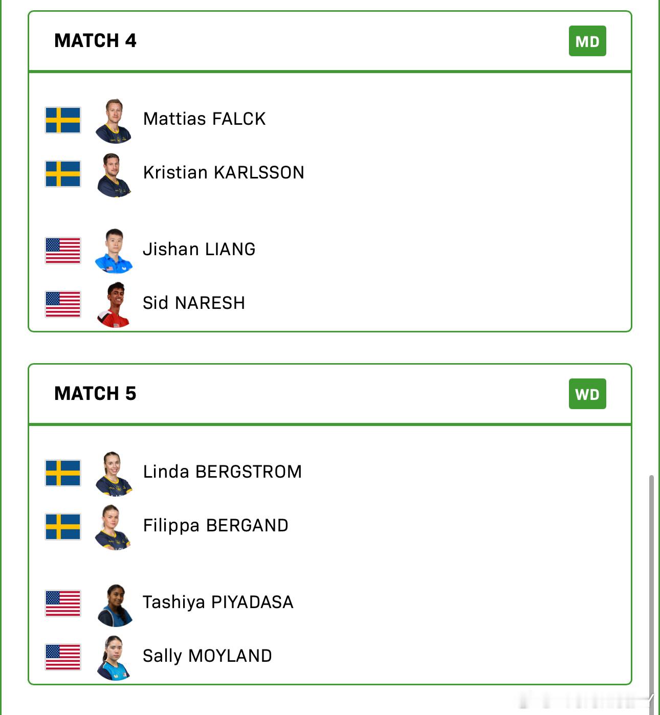 2025混合团体世界杯G3瑞典VS美国K·卡尔松/克里斯蒂娜VS梁吉善/莫兰德琳达VS雷耶斯安东·卡尔伯格VS张向晶法尔克/K·卡尔松VS梁吉善/希德琳达/菲利帕VS塔诗雅/莫兰德