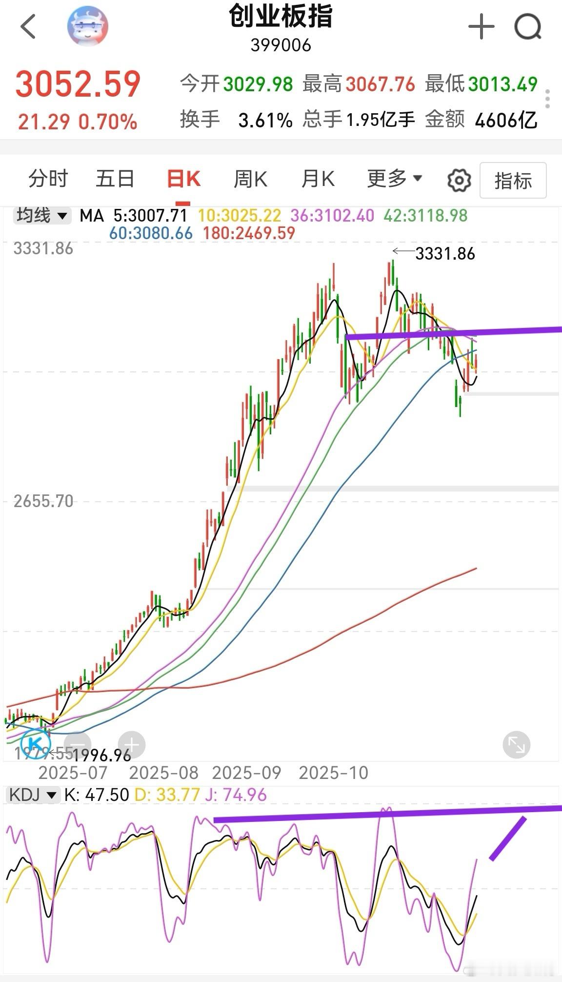 大家早!今天是十二月第一个交易日,也是跨年行情的开始期。美股表现良好,有助A股反弹。创业板目前日线压力位是3123,过了这个压力位,也就突破了均线,有望继续反弹。今天机会大于风险,因为最差也是小阴小阳。今天创业板第一档压力是3087,大概率会去这个点。如果半小时速率快,还能更高至3105。站稳这俩个任何一个位置,我们再考虑更远的位置。上证指数 消费板块也有行情,商业航天也有行情,固态电池也有行情,只不过都是前排的股票涨幅大,其它基本都摸鱼。这种行情将是A股的常态,我们要学会适应。华为的AI玩具销售火爆,要留意这个题材。AI玩具比人形机器人更容易生产,也是AI的终端应用。AI医疗,AI教育,AI玩具,都是AI应用,这大概是明年的一个重要发展方向。跨年行情消费基本跑不掉,影视短剧游戏,连锁店新零售,食品饮料白酒,都会或多或少有机会,挖掘趋势好的,大胆进场。