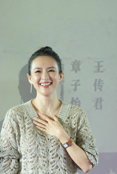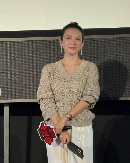 46岁章子怡增肥后更漂亮,穿针织衫+白裤好时髦,美到差点认不出