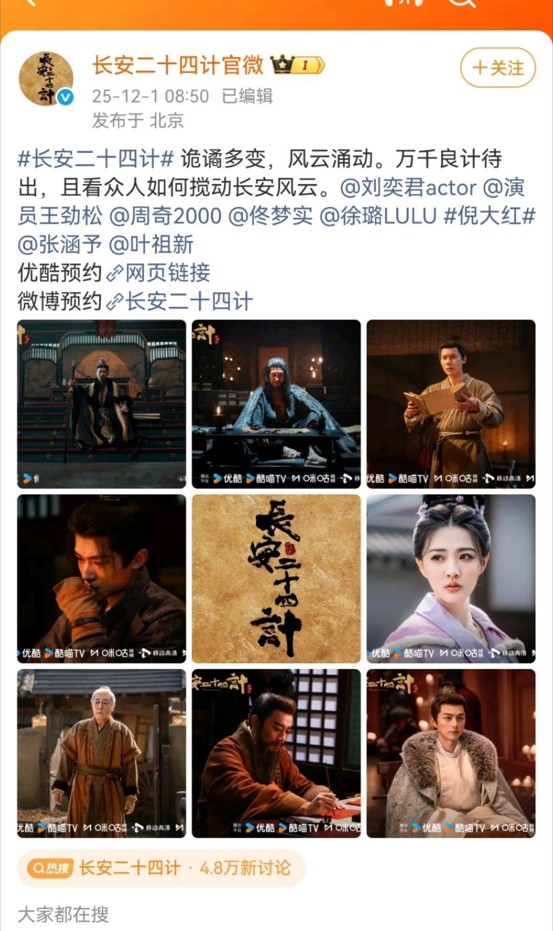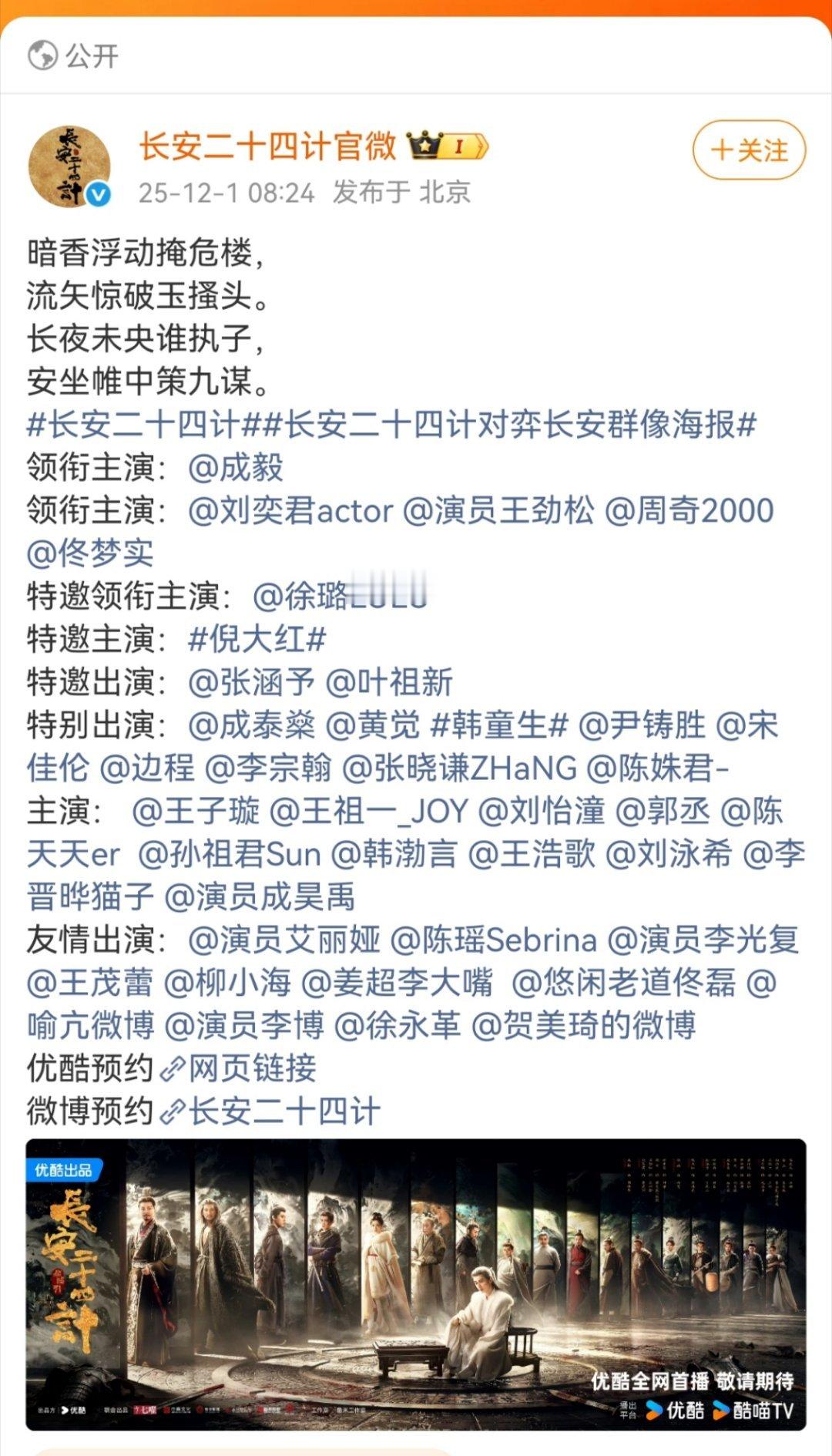 长安二十四计开始预热了,这剧有名有姓的演员居然这么多
