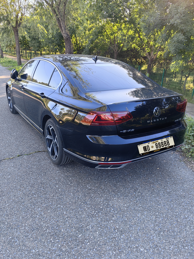 迈腾的二三事 车子已经快一年了,开着各方面都行吧。 算上首保已经保养两次了,空滤和空调滤芯都换了,其它正常保养。 没买的时候听好多人说的最多的问题就是顿挫,开过之后个人觉得这个不叫事儿可以忽略,就是走的慢的时候低档稍微有那么一点点这个价位来说如果硬挑毛病那没法反驳。还有前段时间大热天我去洗车,突然发现我的右前大灯起雾了,当时我就问了下4儿子店,答复是正常的只要一会儿消下去了就没事,挂水珠了就算坏了。我也没当事儿,之后也没在起雾。油耗问题大家都是比较关注,我用车高速居多,最低的时候我从西安去洛阳的时候可能长下坡多我跑过4.8。大部分不刻意去省油开的话都是6.0左右吧。在城区开就费油一点11左右吧,本人不喜欢磨蹭又看不得瞬时油耗飙升索性直接把仪表调成只能看档位和速度了这样开起来就随意踩了。天窗异响什么的偶尔会有一下吧,开车就开车没有心思去注意这响哪儿响的。车机刚买的时候不知道怎么的经常黑不能用,中间更新了一下之后好像就没出现过了。听歌的喇叭就那样吧普普通通。 高速上表现也可以了,L2驾驶辅助够用,超车只要舍得踩油门也是比较轻松的,就是噪声有到点大。稳向来是迈腾的符号,速度很快的时候也不是特别担心。 黑色的车不知道是不是都这样,就洗了的三分钟能看,细看哪儿都是纹儿。