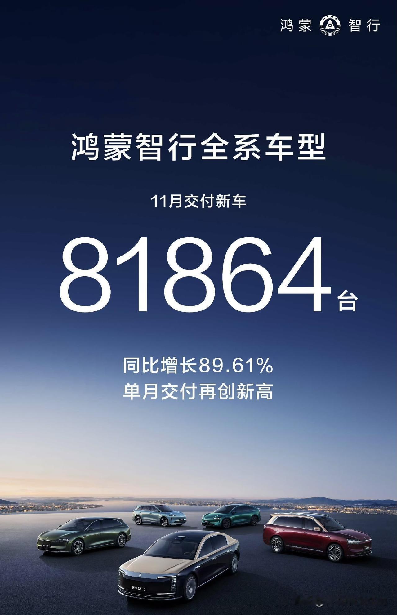 鸿蒙智行全系11月交付81864台。 这么猛的? 10月份这个数字还是68216台,11月一下子就冲到了8万多台…… 刚才我还说零跑估计是新势力11月销冠呢,这就光速打脸,鸿蒙智行11月销量这是猝不及防的大爆发啊。 就是不知道具体销量构成,话说现在没有周销量榜单了,真的不好跟踪了。 晚点看看具体品牌销量明细如何吧…… 很强。