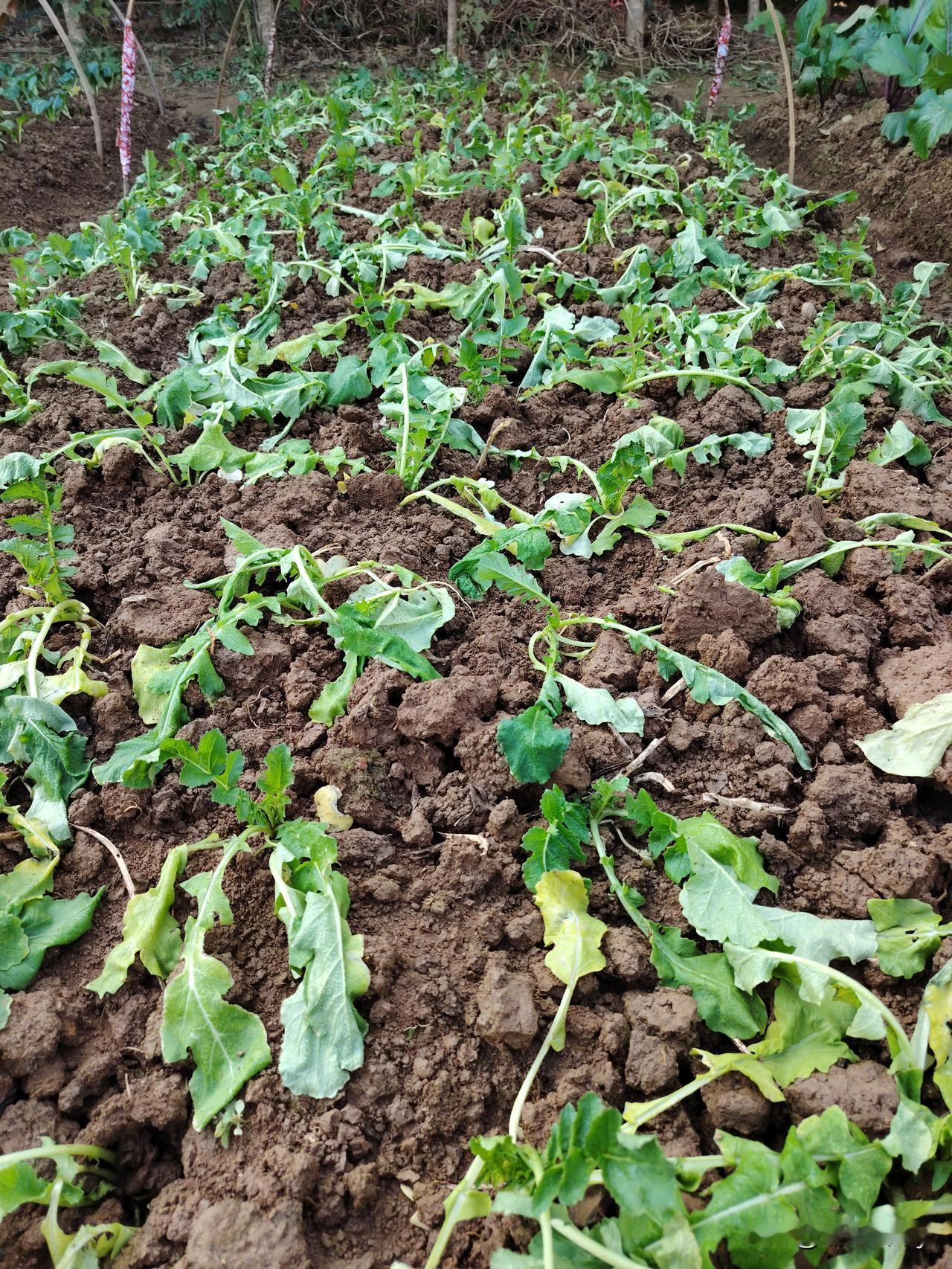 白萝卜太密了,我就试着移栽一小块地试试,看看它能不能活过来,这是移栽后的第五天了,现在这个情况,估计是活过来了,正好在春节以后就能吃白萝卜了。 前两天老公栽了一小块黑白菜,说是想吃白菜苔,听人家说这种黑白菜苔挺好吃的,不知道真假,先试试栽活了以后再看看好吃不好吃!