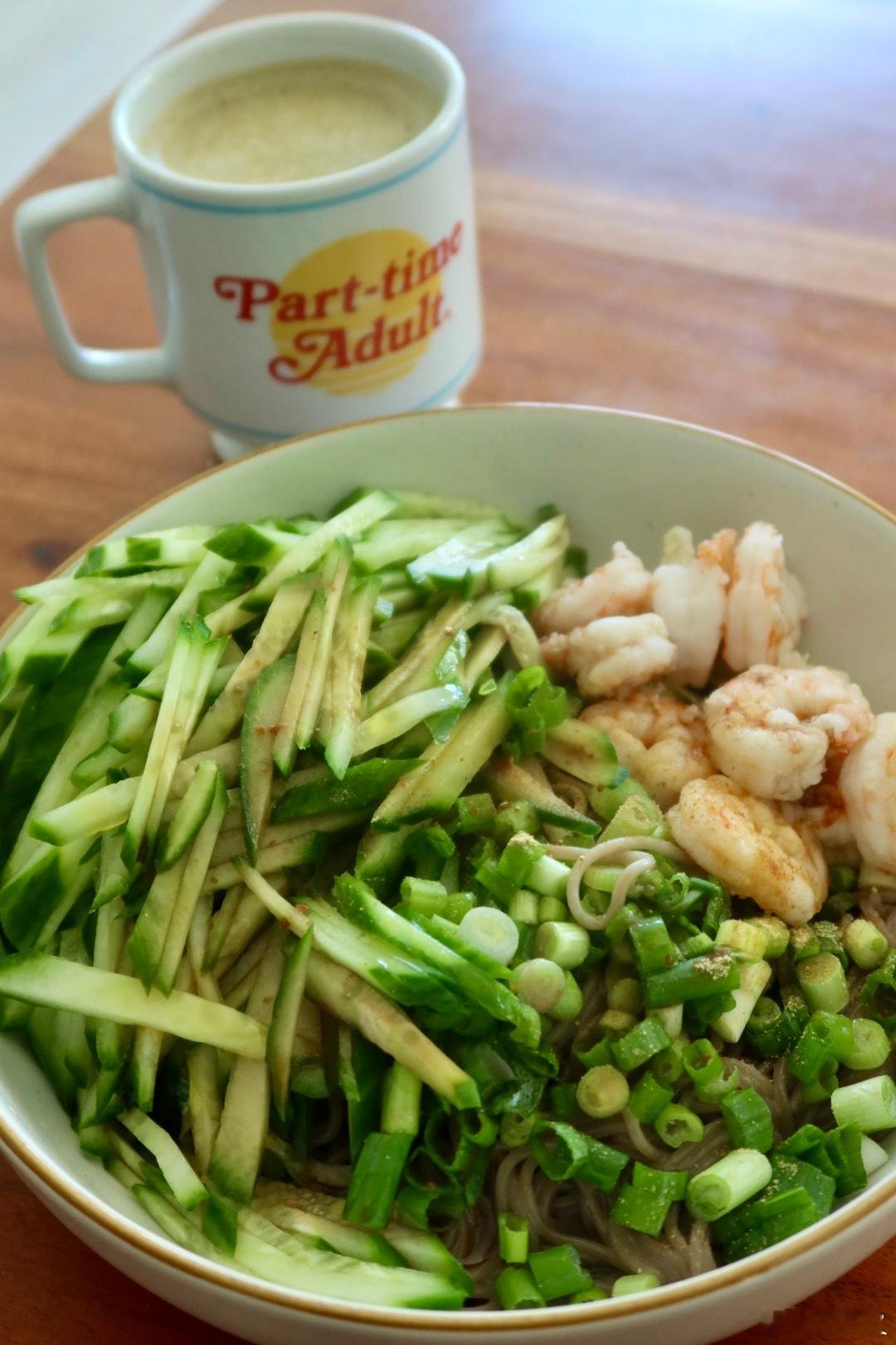 抗炎饮食day94✅重吃小米荞麦 碳水使人快乐早餐:黄苹果opal apple藕粉,黄苹果用微波炉叮一分钟,加到冲好的藕粉里。藕粉有时候会冲的很失败,发现微波炉竟然能拯救藕粉!午餐:黄瓜🥒虾仁🍤凉拌荞麦面,最近碳水除了根茎类,重新引入了小米和纯荞麦面,虽然外面冰天雪地但我心被两个熟悉的碳水温暖,感觉餐桌又多了点期盼,失而复得的快乐远大于一直习以为常的拥有。在坚持两个月的严格原始人饮食让免疫系统免受加起来半年的刺激,就开始重新引入大部分食材,当然添加糖和深加工食品垃圾食品长久的拜拜了(我努力晚餐:芦笋炒培根(无添加无糖属于已经努力了)、烤鸡翅(擦干水、很多蒜粉、一点椰子酱油、木薯淀粉,也属于很努力了)