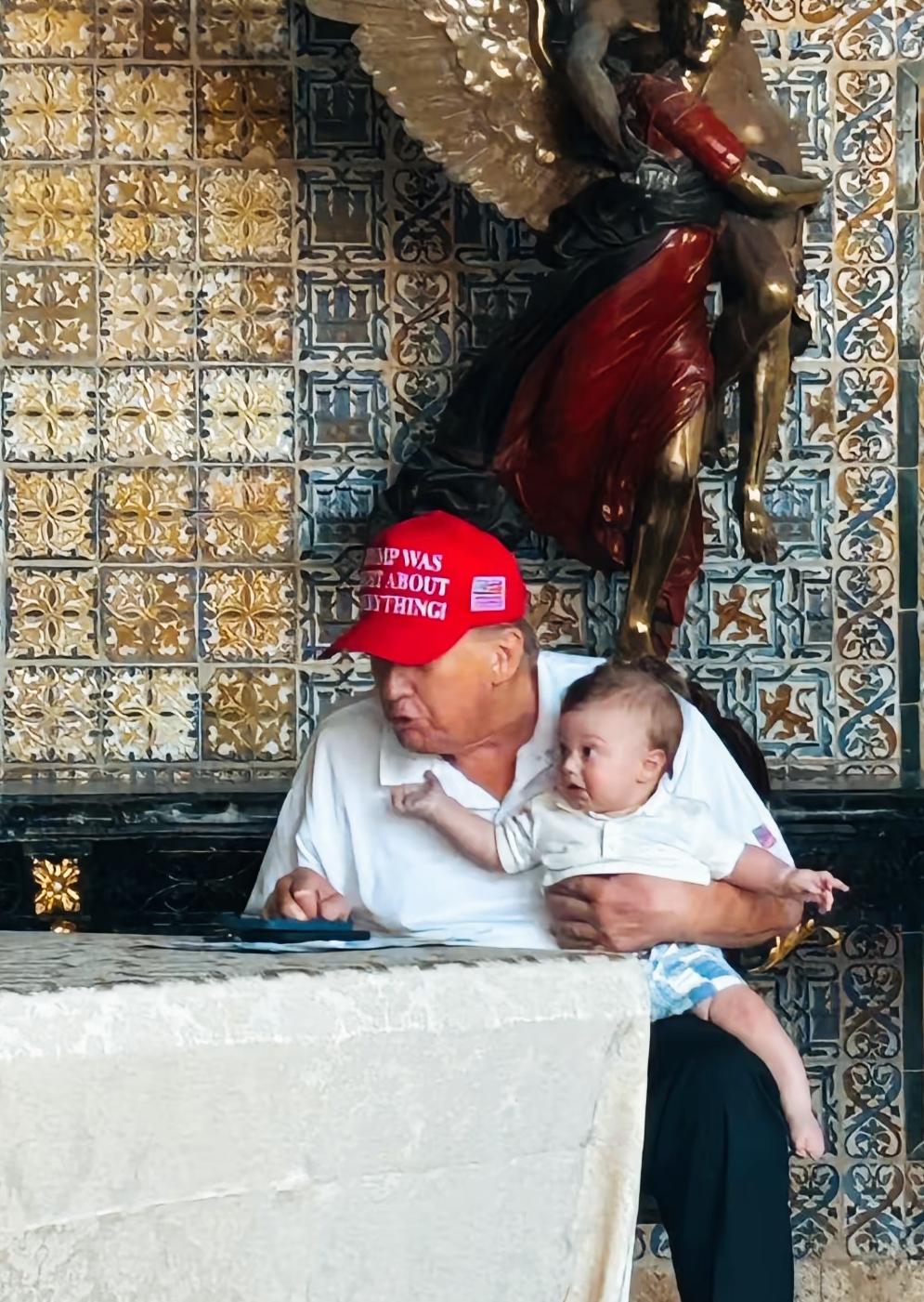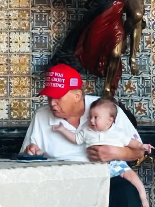 特朗普和抱着的小孩面部表情,是不是有点神同步啊? 两人的嘴型是不是有点像啊? 两人是不是非常有默契感啊?