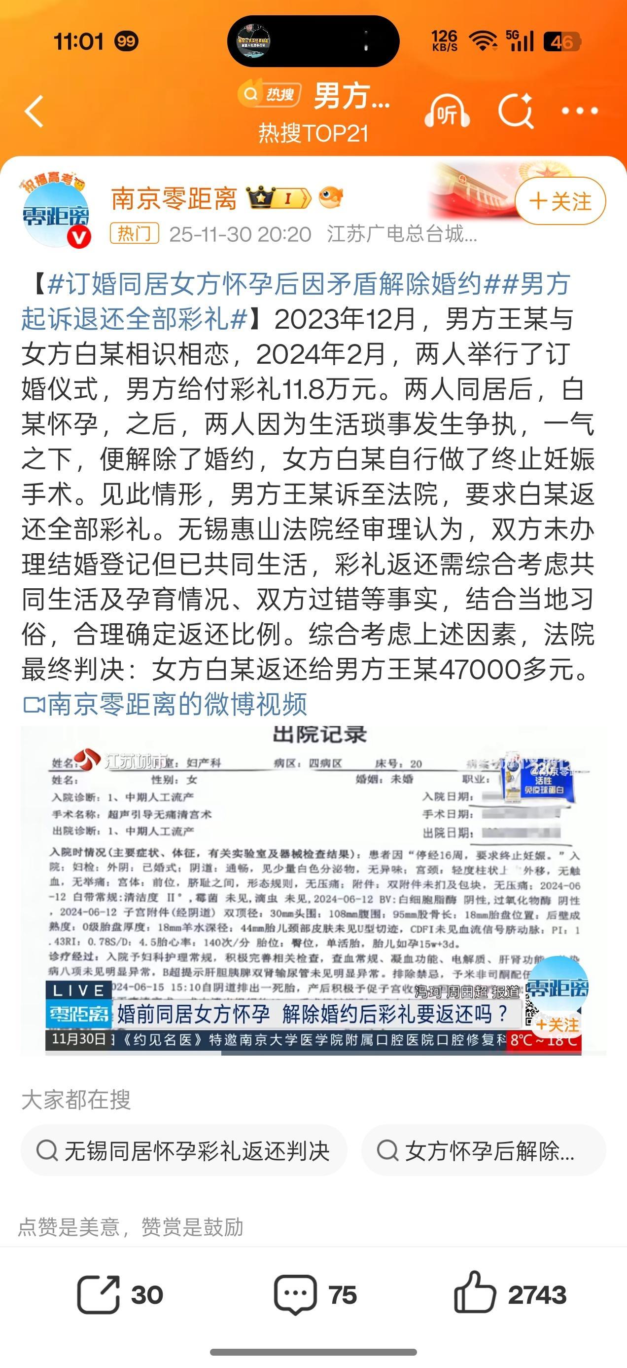 男方起诉退还全部彩礼这都同居怀孕了,还起诉退还全部彩礼的话那确实过分了。。