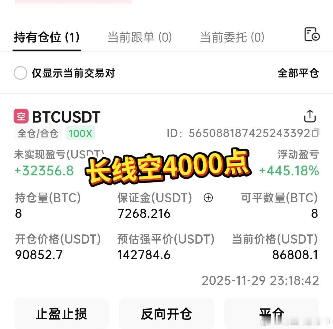 12月比特币迎来空头直线下跌暴击,周末就说过了,空头要迎来主导。在91000位置就已经安排去看空,现在价格直接跌至87000关口,直接下跌4千点。我们实盘长线空现在还在手中。现在的下跌只是才刚刚开始。多头⚠️四小时级别k线走出大阴柱,跌破下轨的支撑,价格现在87000横盘修复,并无太大的反抽的动能,价格还要继续下探,看现在形态价格底部在80600位置,目前形态回踩下去只是时间的问题。高位长线空暂时继续持有,如果空仓的可以继续考虑在87800-88300区域分批看跌,目标85000破位看82000附近