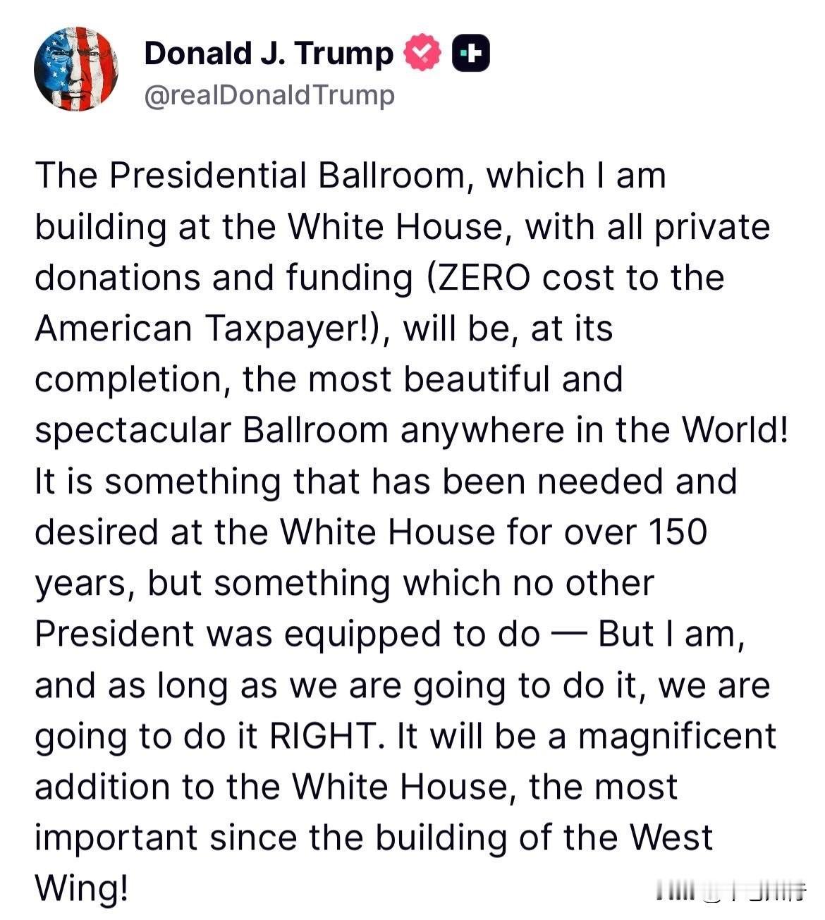 【白宫装修不用纳税人掏钱?川普这才是把“权钱交易”玩成了行为艺术】 川普不愧是