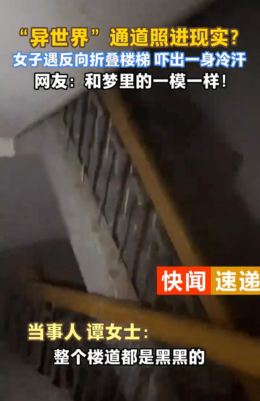 湖北襄阳,女子下班时迟迟没有等到电梯,就选择摸黑走楼梯下楼,可走着走着却发现不对劲,打开手电筒一看,两段楼梯反向折叠、交错排布,让她害怕不已,直言:好像是梦里才有的场景。但网友却表示:大惊小怪 谭女士介绍,自己平时上下班都是乘坐电梯的,没走过楼道,这天刚好下班时两部电梯一部坏掉了,一部迟迟没下来,就想着干脆走楼梯算了 当时楼道里一片漆黑,安静得能听见自己的脚步声。她打开手机手电筒,小心地往下走。可没走几步,她就觉得不太对劲,楼梯的走向和她平时见到的完全不同。两段楼梯像折纸一样交错排列,一段往上斜,一段往下折,层层叠叠,像是某种几何迷宫 她心里有点发毛,忍不住把视频发到网上,表示在南方生活这么多年,基本上没有见过这样构造的楼梯,觉得很怪异 没想到,这条视频引来了不少网友的留言。有人淡定地解释:这叫“剪刀梯”,一跑就能上一层楼,很常见的设计,没什么奇怪的。也有人笑她大惊小怪:这都没见过? 原来,我们平时在住宅楼、办公楼里见到的,大多是“双跑楼梯”,走一段转个弯,上半层再走一段。而“剪刀梯”则是把两段楼梯交叉叠在一起 值得一提的是,剪刀楼梯的设计其实挺讲究空间利用率,一个楼梯间能塞进两条通道,相当于把楼梯折成一把剪刀的形状,走起来比传统楼梯快一点,也更节省建筑空间。算是一个很常用的设计方案,不是什么稀罕物 只是有时候大家习惯依赖熟悉的路线,一旦跳出轨迹,就会发现原来自己对生活空间的掌控感没那么强,只不过平时被电梯、照明和导航给掩盖住了