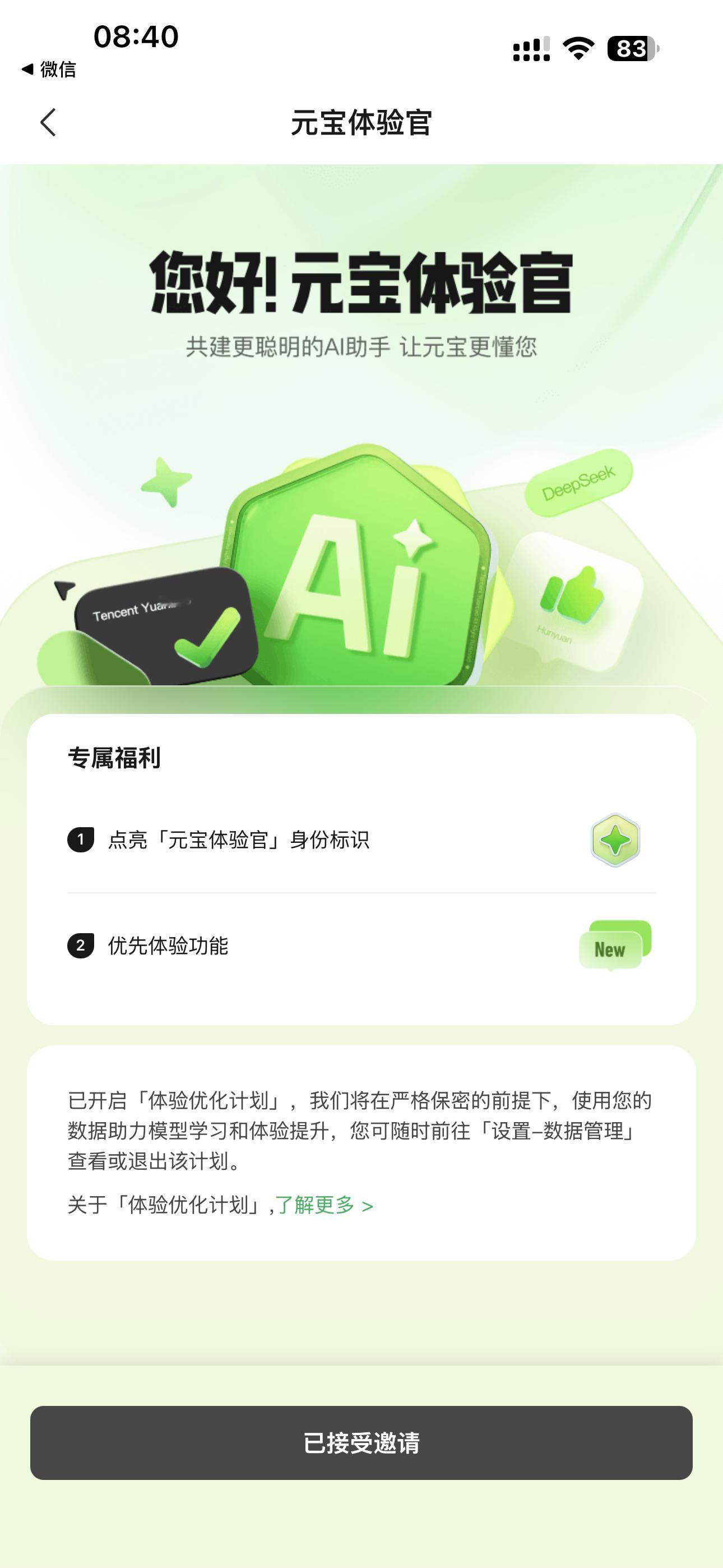 一直都是用元宝微信好友聊天,早上才下载App…学习AI就是多用、多看、多问,多行