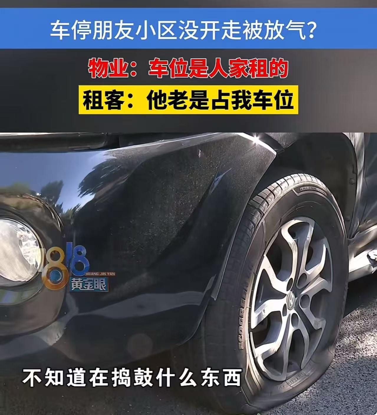 浙江杭州,男子把车停在朋友小区,好几天没开走,被车位主人放气!男子很气愤,要求车