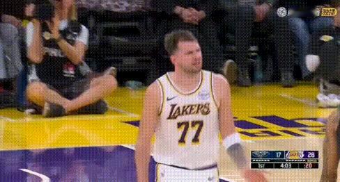1节打卡?东契奇首节20+6+4,鹈鹕全队27分。 开局就连续3分,首节9中6、3分5中3狂砍20+6+4+1抢断+1盖帽。在他带领下湖人爆砍46分,单节狂赢19分! 这数据放全场也很出色了,他1节就完成,太无敌了。 3分后甚至跟鹈鹕替补席的小乔丹互动(图1),节末还玩了个半场3分(图8),是真打高兴了! 今天能否半场打卡?詹姆斯不打下班就是这么早快。[笑哭][笑哭][笑哭] 图7:独有节奏神奇助攻,海斯都愣了:这能传过来?这咋防?
