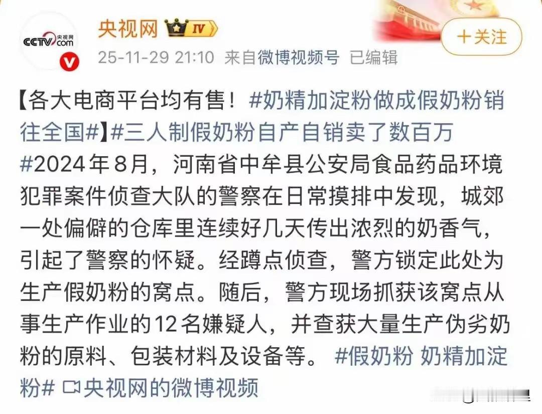 这几款假奶粉只有奶精和淀粉!还有人在线下用鸡蛋哄骗老年人上当挣钱真谛 老话说"想挣钱的路子都在刑法里,河南有几个大聪明瞅准消费者想喝优质奶粉又图便宜的心理,假冒14种驼奶、羊奶,全都用植脂末、麦芽糊精和固体饮料三种原料混合而成,说白了就是加了奶精和淀粉。包装得和正品一模一样,价格却低了大半。他们笃定"只是没营养,又吃不死人",觉得能蒙混过关赚暴利。殊不知这看似"无害"的赚快钱路子,早就踩进了刑法的红线里: 根据《刑法》第一百四十条,生产、销售伪劣产品罪明确规定,只要销售金额达到五万元以上,就构成刑事犯罪;而这类假冒婴幼儿奶粉,还可能触犯生产、销售不符合安全标准的食品罪,哪怕没直接造成健康损害,仅生产销售行为本身就已违法,等待他们的只会是法律的严惩。黑心奶粉 奶粉陷阱 儿童奶粉骗局 奶粉假 骗老人买驼奶粉 国产奶粉黑幕 奶粉 假奶粉无营养 商家良知何在