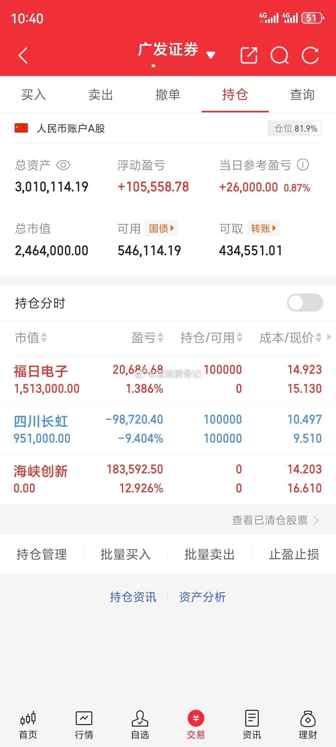 “实盘记录”,目标一年翻倍(第172天)今日买入:600203福日电子今日卖出:300300海峡创新 继续持有:600839四川长虹 我会每天实盘记录下来,相信实盘肯定一直往前冲,希望各位股友支持壹姐,点赞富一生!评论168,票票红彤彤!特别声明:这只是我个人的操作记录,不作为任何投资建议,更不是劝你们跟买! 股市有风险,投资需谨慎!