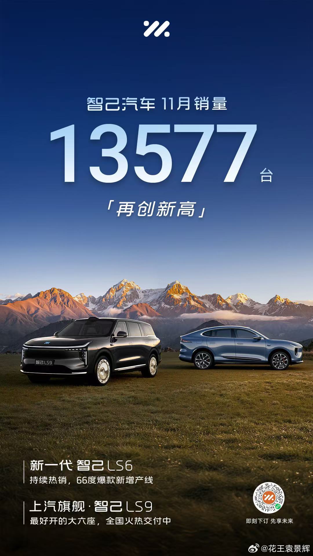 智己汽车11月销量13577台,连续三月销量破万,并再创品牌历史新高!新一代智己LS6 持续热销,今年唯一的800V大电池超级增程大五座SUV。为响应市场火爆需求,11月智己已火速协同宁德时代,为66度电池爆款新增产线,产能全力拉满,交付进一步提速!上汽旗舰大六座智己LS9 全国火热交付中,最好开的大六座,全系皆Ultra。上市即火爆,随着产能进一步爬坡,12月销量必将进一步向好!12月,在新一代智己LS6和智己LS9双爆款的强劲驱动下,智己汽车将延续这一火热态势,市场表现更加值得期待!智己汽车11月销量13577台上汽旗舰智己LS9开启交付上汽旗舰智己LS9新一代智己LS6