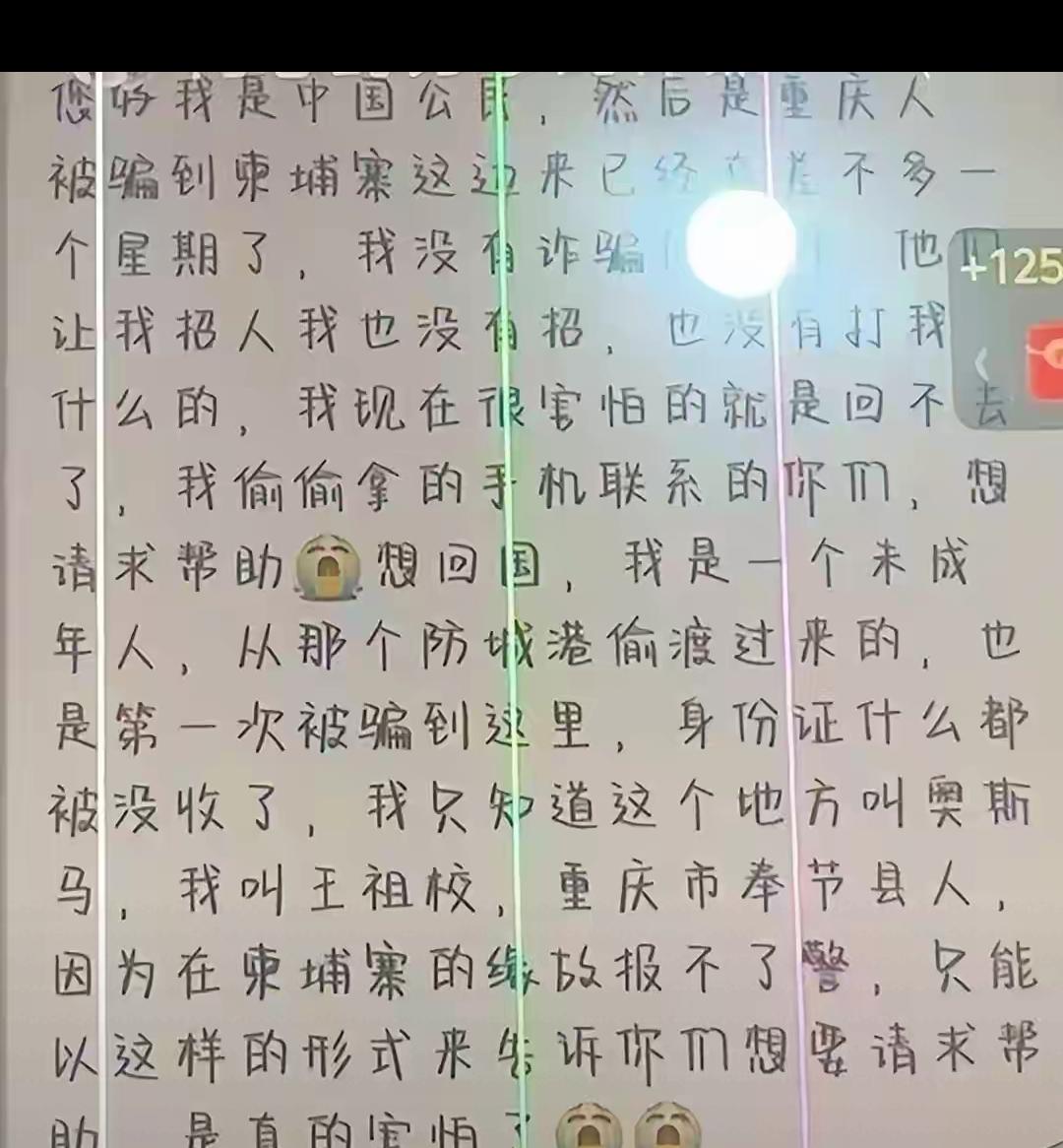 17岁少年被骗柬埔寨!高薪骗局的糖衣,裹着最恶毒的砒霜 17岁的年纪,本应在阳光下肆意生长,重庆少年王祖校却因一句“浙江高薪服务员”的谎言,坠入了东南亚骗局的炼狱。 家人收到他戴手铐跪地的照片时,心如刀绞,20万赎金的最后通牒,更是压得这个普通家庭喘不过气。从广西防城港的神秘来电,到柬埔寨的求助短信,再到电棍殴打后的惨状,每一个细节都在揭露骗局的残酷真相。那些看似诱人的“高薪工作”,不过是犯罪分子诱捕的诱饵,一旦上钩,便是人身自由被剥夺的绝境。 骗局从不会贴标签,却总藏在“轻松赚钱”的幻想里。警方和驻柬机构的全力搜救让人看到希望,但更该警惕的是,别让“高薪梦”变成“家庭痛”。 你身边有人遇到过类似的骗局诱惑吗?评论区分享你的防骗经验!
