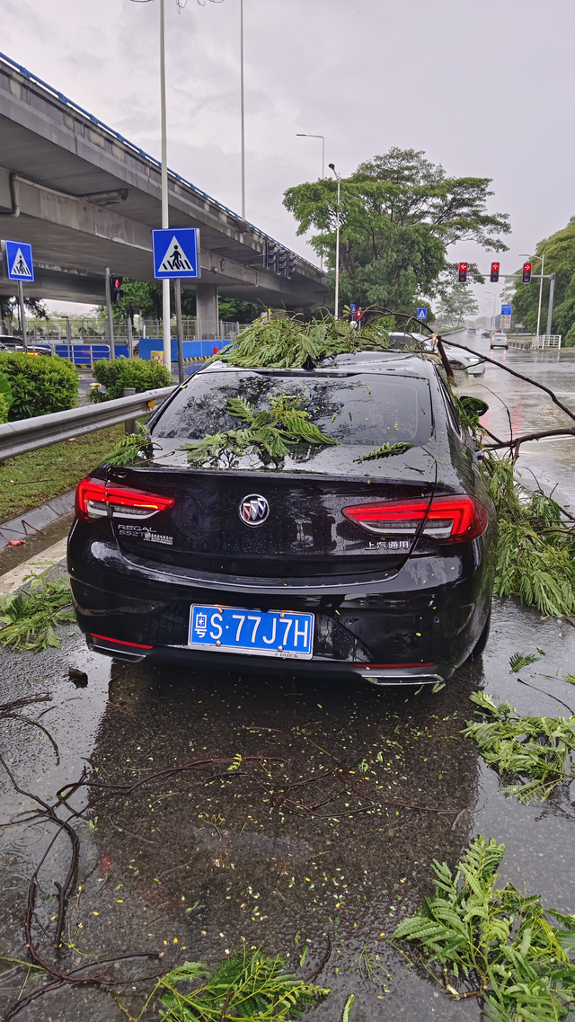 台风天出行一定要提高警惕呀 昨天等个红绿灯,突然刮来一阵妖风,爱车小黑就成这球样了,欲哭无泪呀…。送到4儿子店去后,建议切割修复,得把整个顶切掉换顶,好心痛,一年还未满的车,这样一弄那叫一个心痛啊😭,这种情况的无痕修复可以把凹陷的那里恢复吗?不想切割