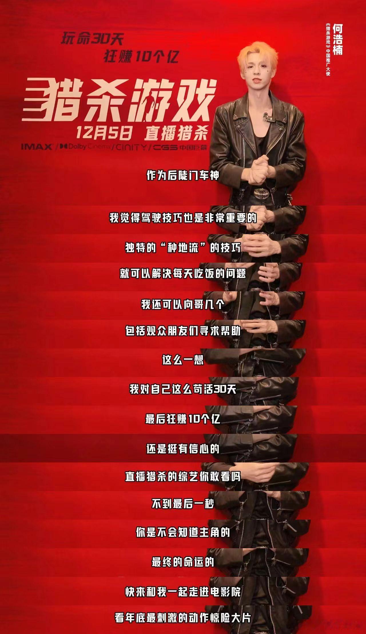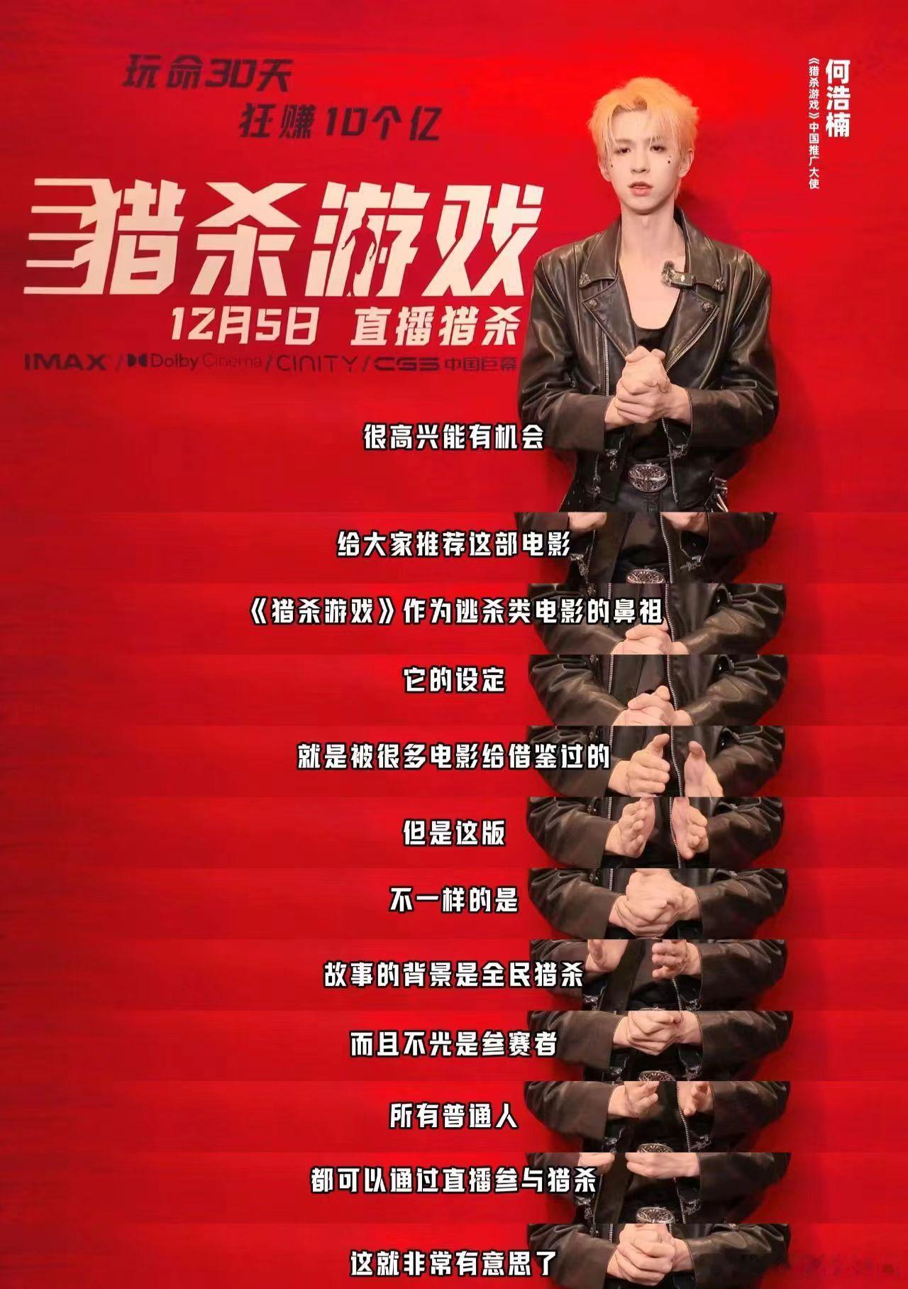 何浩楠献唱猎杀游戏推广曲何浩楠在《猎杀游戏》推广曲领域放大招,《Look at me》正式上线。新歌魅力初现,超想听到他更多的精彩作品~😏 何浩楠猎杀游戏中国推广曲特辑