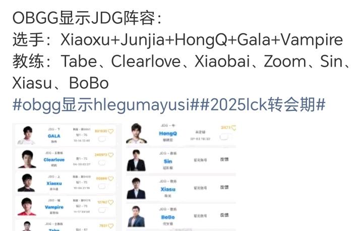 JDG正式官宣HongQ,JunJia加盟,感觉京东和李宁这两个战队每个休赛期都是一通忙活最后组成一套很一般的阵容! JDG在教练组上大做文章,tabe放弃AL这样的阵容直接来JDG,不知京东是本来大手笔引援失败才组成这样的阵容还是他们原来就是准备买这几个选手的? 最后就是京东豪华的教练团队但阵容很一般!在lpl联赛更多的是拼选手的个人能力,但京东现在的这个中野以及其他选手真的能在联赛上占到便宜吗?我表示疑问,感觉京东最后又是白忙活一个赛季。