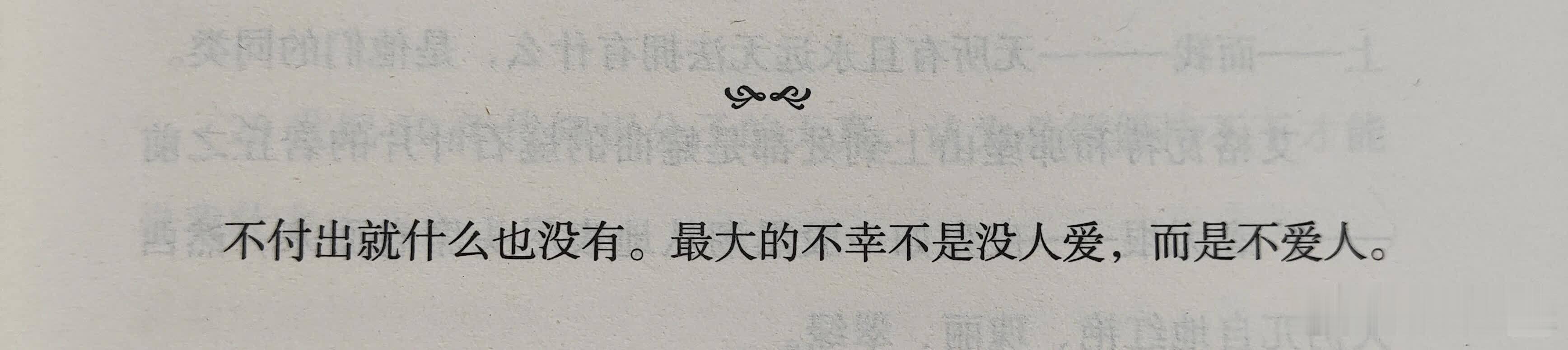“救命!好喜欢这句😭” · 不付出就什么也没有。最大的不幸不是没人爱,而是不爱人。 · Without giving, there is nothing. The greatest misfortune is not being unloved, but not to love. · 《加缪手记》 第三卷 语言的魅力