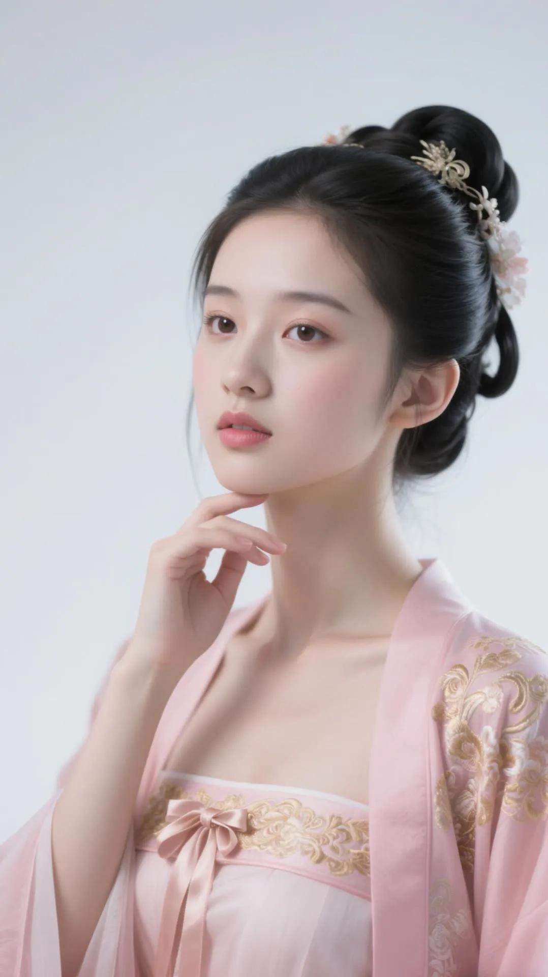 粉嫩的中国风旗袍,搭配精致的妆容和发饰,尽显东方古典美!