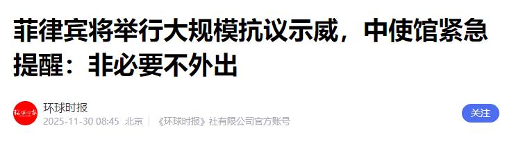 彻底乱了!菲律宾终于被美国害惨了,马科斯没想到跟随美国后果这么严重 新华社消息,中国驻菲使领馆提醒在菲公民加强安全防范,非必要不外出,远离人群聚集场所和交通管制地带,确保人身安全,这说明菲律宾安全形势已经到了非常严峻的地步。 当地时间11月30日,成千上万的菲律宾民众聚集在首都马尼拉,要求对一起涉及数十亿美元的基础设施丑闻追究责任,从而导致这个事件再度升级。 而这起闹得沸沸扬扬的贪腐案,涉案金额着实吓人,马科斯今年7月在国情咨文里自己抖出来,全国近1万项防洪工程有严重问题,总金额达5450亿比索,约合人民币680亿元,相当于菲律宾全年GDP的2%。 审计一查更离谱,8000多个项目里藏着421个“幽灵项目”,钱拨了却连工地影子都没有,6290亿比索就这么凭空消失了,更戏剧的是前众议员扎尔迪·许直接曝光视频,说自己分两次用27个行李箱装了10亿比索现金,按马科斯表弟罗穆亚尔德斯的指示送进总统指定的私宅,还透露每月要从工程款里抽20亿回扣,马科斯和他表弟一人一半分赃。 这些本该用来修堤坝的钱,全进了政客腰包,难怪今年夏天马尼拉洪水淹门时,民众气得直骂街。 搞笑的是,马科斯政府对贪腐睁一只眼闭一只眼,对讨好美国倒是大方得很,2025年菲律宾军费直接飙到85亿美元,比2023年暴涨70%,这些钱大半花在了采购美式武器和扩建美军基地上,光吕宋岛就部署了美国的反舰导弹系统,把自家地盘变成美国的“亚太前哨”。 反观民生项目,电力部门申请的12亿美元电网翻新预算被搁置,中菲跨境输电项目说停就停,结果菲律宾多地夏天大面积断电,老百姓连空调都开不了,只能在高温里骂娘,一边是军事合作的“阔绰”,一边是民生工程的“抠门”,马科斯这算盘打得,菲律宾人隔着太平洋都能听见响。 但美国这边收了好处,可没给菲律宾带来半分实惠,嘴上说着“支持盟友”,实际只把菲律宾当棋子,2023年拉着搞1.7万人的“肩并肩”军演,2024年又加进来澳大利亚、法国,逼着菲律宾把中国造军舰当靶船炸,故意挑动地区紧张局势。 等到菲律宾贪腐闹大了,美国国务院倒会说风凉话,在投资气候报告里指责菲律宾腐败泛滥,却半点实质性援助都没有,反而趁机兜售更多武器,这操作跟街头骗子差不多,先哄着你掏钱买“保护”,真出事儿了转头就说你“自己不检点”。 如今菲律宾彻底乱了套,马科斯的支持率跌到18%,创了任内最低,11月30日的抗议人数超12万,宿务、达沃等城市也跟着爆发示威,民众喊着“把腐败官员关监狱”,连副总统萨拉都跟他划清界限,公开支持对罗穆亚尔德斯的指控。 安全形势更是一塌糊涂,警方提前备好防暴队伍,就怕9月那场骚乱重演,中国公民连门都不敢随便出,马科斯之前还拍着胸脯说圣诞节前把责任人绳之以法,结果被扎尔迪当众打脸,现在连自己都成了被指控的对象,真是丢人丢到家了。 说到底,马科斯这步亲美棋就是自寻死路,本想靠美国撑场面,结果民生资金被挪去填军事窟窿,贪腐趁机滋生,民众怨声载道,安全局势一落千丈,美国把菲律宾榨干了价值,转头就会弃如敝履,毕竟棋子从来没有被真正当回事。 现在马尼拉的抗议声还没停,洪水后遗症还没好,马科斯怕是得好好想想:跟着美国混,到底是风光还是遭殃了?