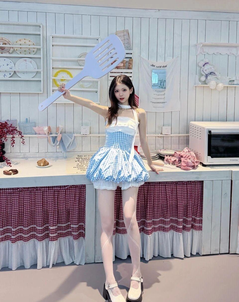 复古少女风,黑白格子裙,咖啡馆的午后时光。你们喜欢什么类型的美女 又纯又欲的女生