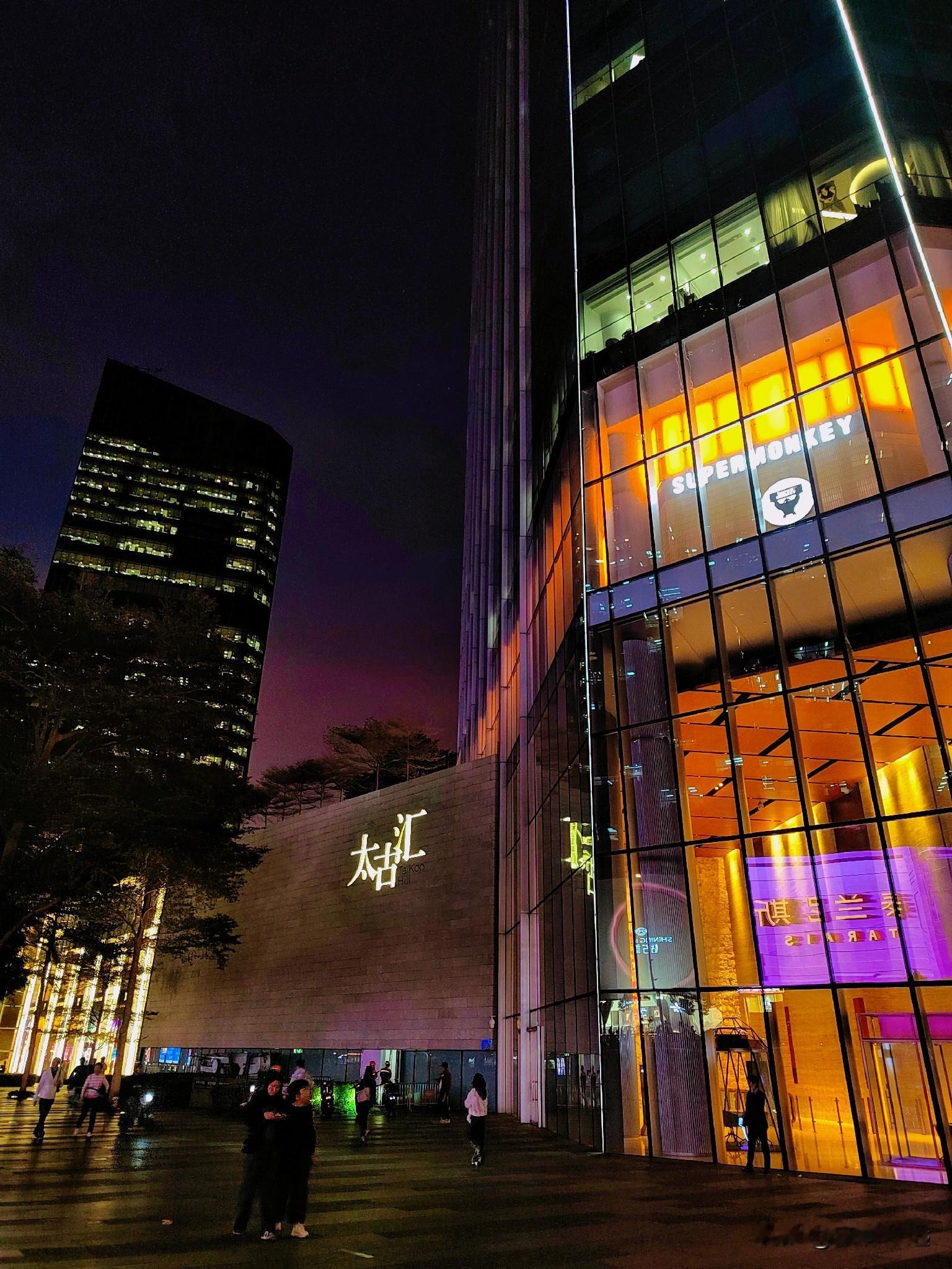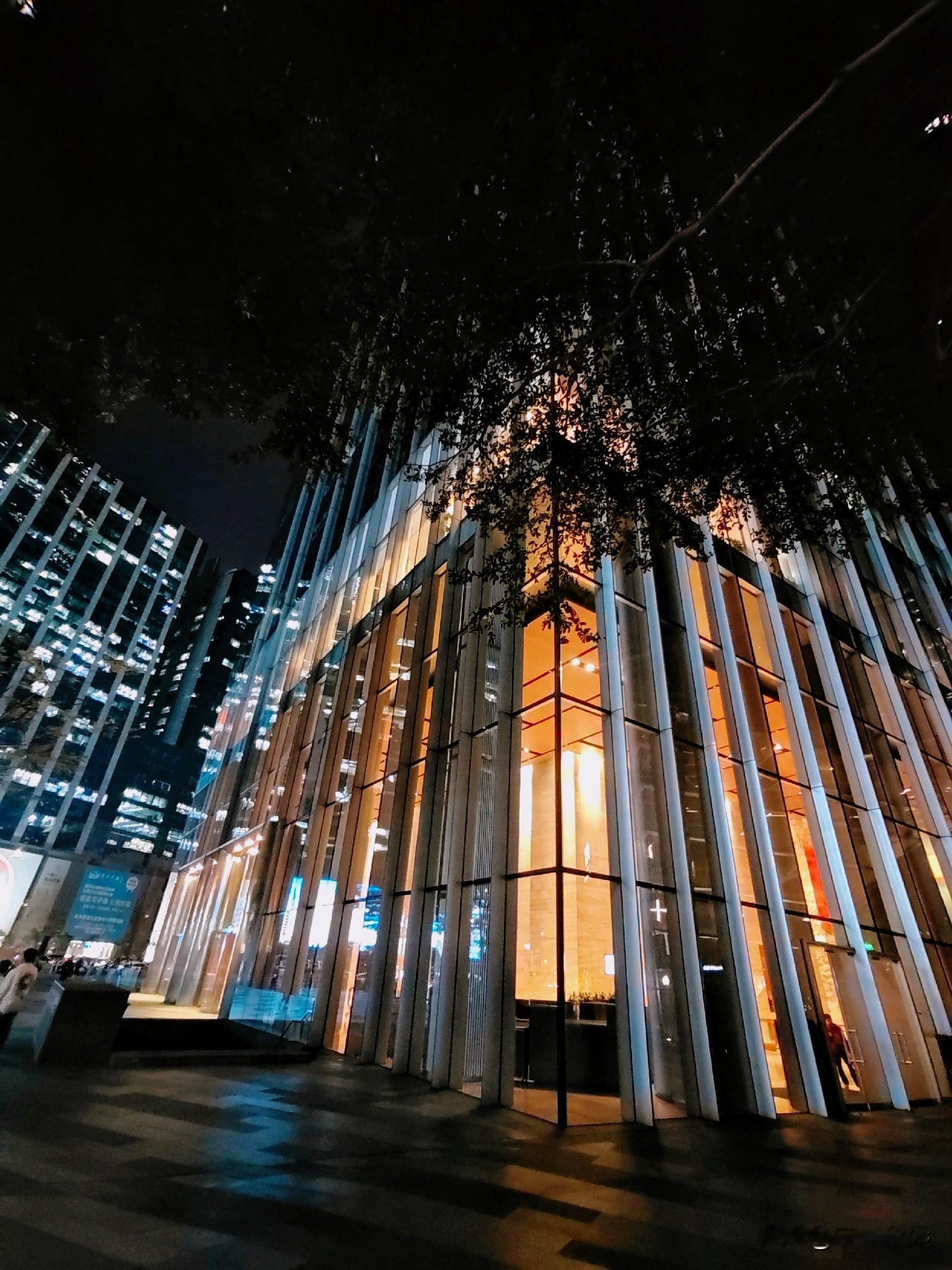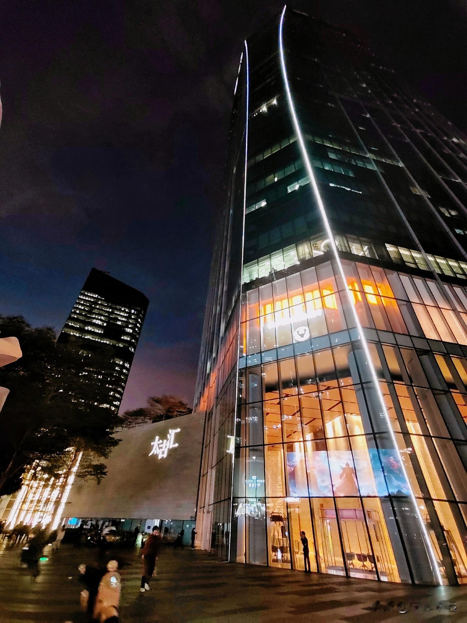 冬日傍晚,夜幕悄然降临,广州太古汇的外观堪称绝美。它坐落于繁华的天河区,是羊城的新地标。
