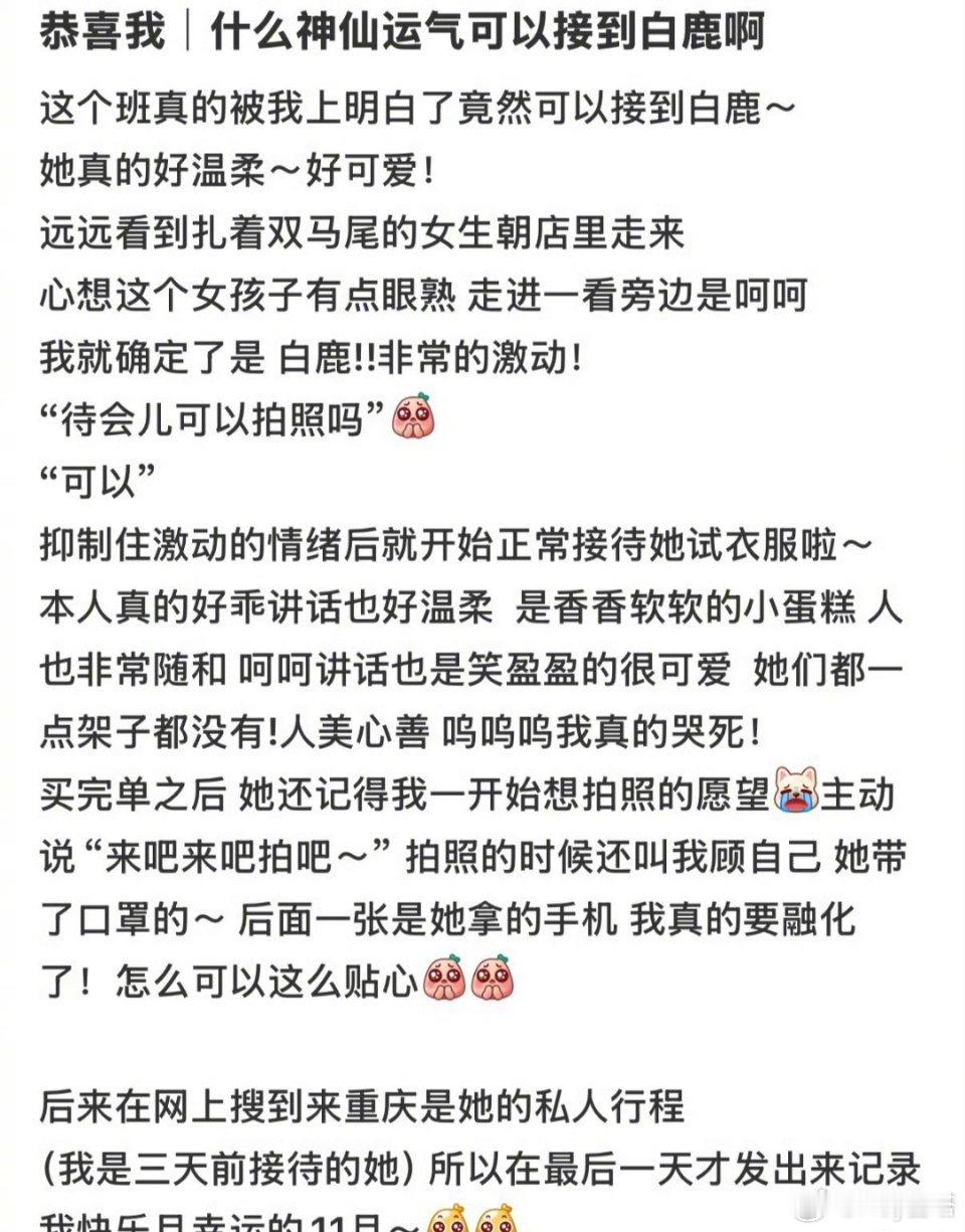 网友上班偶遇白鹿双马尾白鹿被路人偶遇合影 我的妈耶!!这是什么神仙运气啊!上班居然能偶遇白鹿还和白鹿合影了白鹿!!