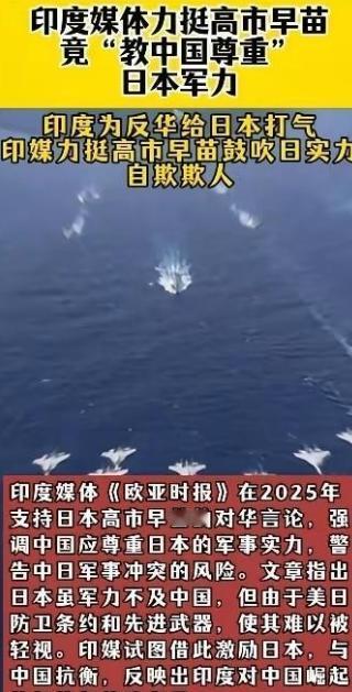 就在中日关系趋于紧张之时,印度竟公然站队日本,印度媒体力挺高市早苗,甚至声称要“教中国尊重”日本军力。于是,有人感到不解:日本当年不也曾侵略过印度吗?印度不报当年之仇也就罢了,为何还支持日本军国主义,与仇人沆瀣一气?有此疑问的人,实在是高估印度了。 最近中日关系紧张,印度媒体突然跳出来力挺日本首相高市早苗,甚至放话要“教中国尊重”日本军力。 这事儿让不少人犯嘀咕:日本当年明明打过印度,怎么如今反倒成了盟友? 而她在日本政坛以右翼立场出名,早就因为参拜靖国神社、否认南京大屠杀受过批评。 今年更在国会公然宣称“台湾有事就是日本有事”,把台海问题和日本的集体自卫权绑在一起,这是二战后日本首相头一回在正式场合喊出要武力介入台海的话。 不光如此,她上台后一直在推动扩军,还琢磨着修改日本的“无核三原则”,明眼人都能看出是在为军国主义招魂。 可让人费解的是,就是这样一个为侵略历史翻案的人,却得到了印度媒体的力挺。要知道,日本当年对印度可没手软。 1942年日军占领了印度的安达曼-尼科巴群岛,强征劳工和慰安妇,还以抓“间谍”为名处决了几百人。 后来日军又打英帕尔,虽然最后被英印军队和中国远征军打退,但撤退前照样屠杀了不肯合作的印度俘虏,整场战役日军造成的伤亡比英印军多好几倍。 说白了,印度的算盘里从来没有“历史恩怨”这一项,只有“现实利益”的加减法。 现在印度正搞“印度制造”,最缺半导体技术和资金,而日本刚承诺未来10年给印度投10万亿日元,还帮着建高铁、转移半导体技术。 安全上更不用说,印度一直想在亚太找盟友制衡中国,日本正好递来橄榄枝,两国刚修订了安全合作声明,要一起搞防卫装备研发,连网络、太空领域都要联手。 高市早苗的对华强硬态度,反倒成了印日合作的“催化剂”。 印度媒体力挺她,本质是想借日本的力量给中国施压,顺便换得更多经济和军事上的好处。 那些当年被日军屠杀的印度民众、被驱赶到荒岛饿死的幸存者,在现实利益面前,早就成了可以被遗忘的过去。 这样的合作其实脆得很,靠算计凑在一起的盟友,从来不是什么牢不可破的关系。 只是可惜了那些为保卫印度牺牲的生命,如今反倒成了本国讨好仇人的垫脚石。 以上都是个人观点,对此您有什么不同的看法,可以在评论区留言讨论!!!