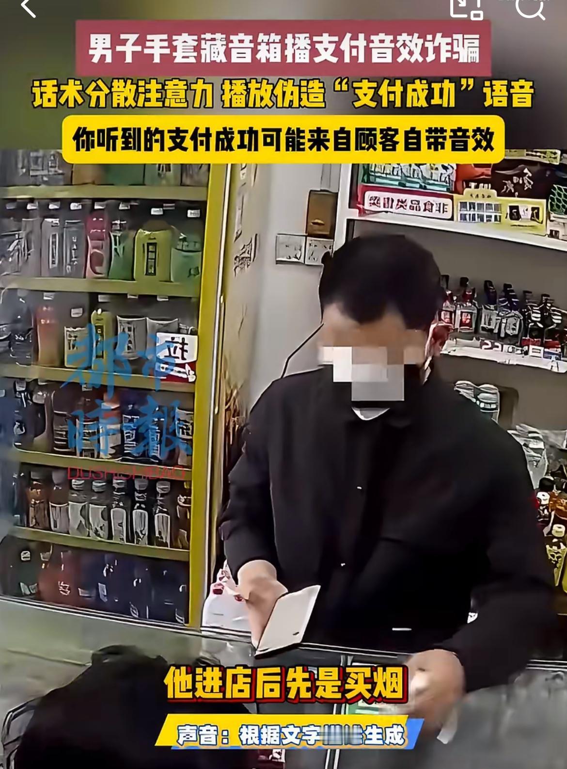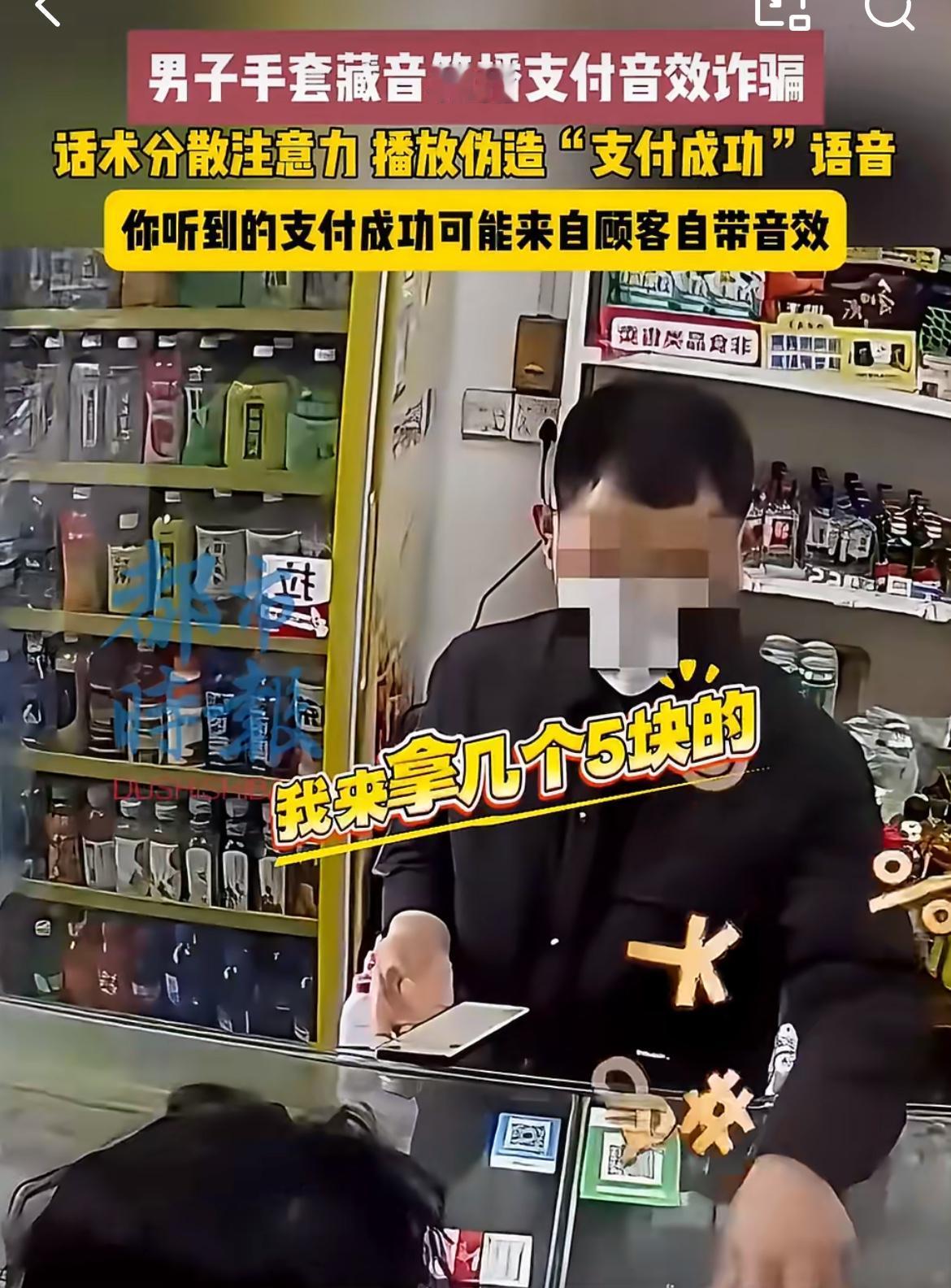 男子伪造收款码语音假装支付,想不到骗子们的技术又进化了。在湖北宜昌一烟酒店,男子消费121块,趁店主不注意,伸出带有微型麦克风的手套到柜台内,另一只手操作手机,假装扫码,店主听到支付信息,以为钱已经到账,就没有查看实际账户。等事后查账,发现受骗。网络扫码诈骗 冒充熟人骗局 陌生二维码骗局