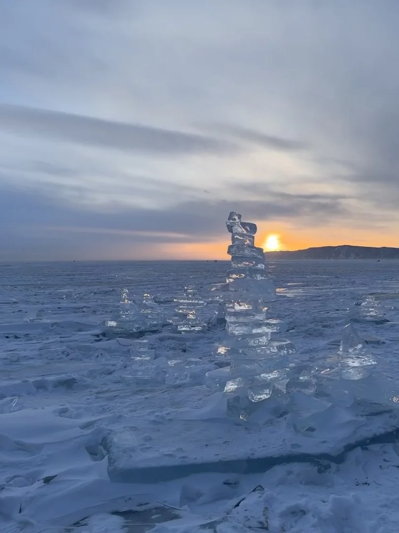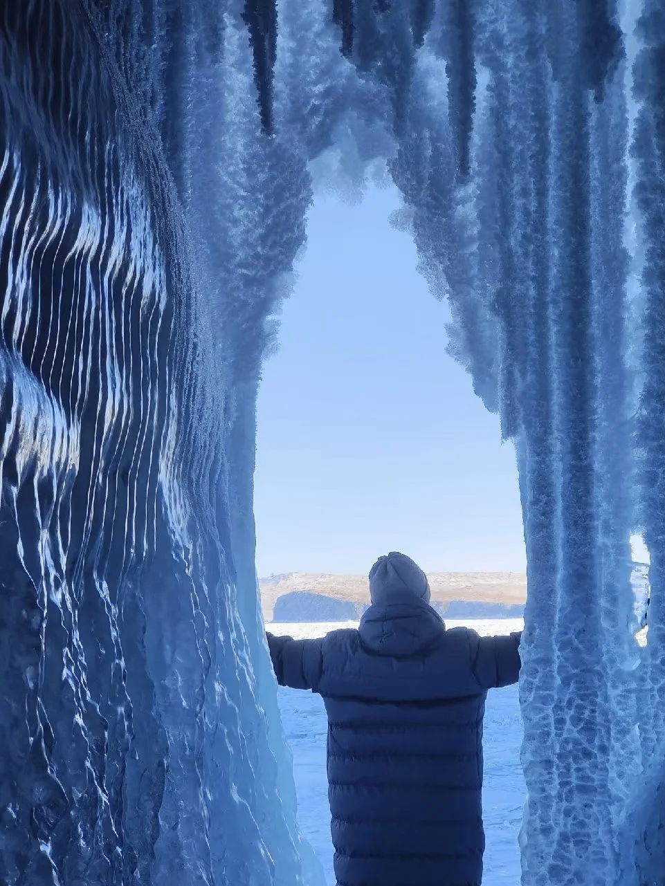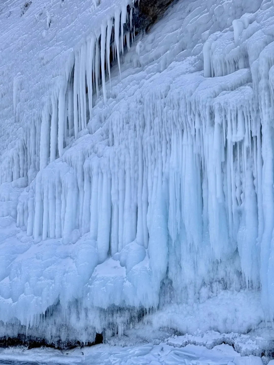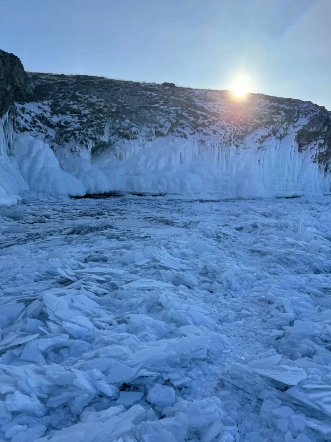 北线能扎进贝加尔湖湖心!蓝冰像碎钻铺在湖上,还有垂下来的冰坠子,拍出来巨震撼