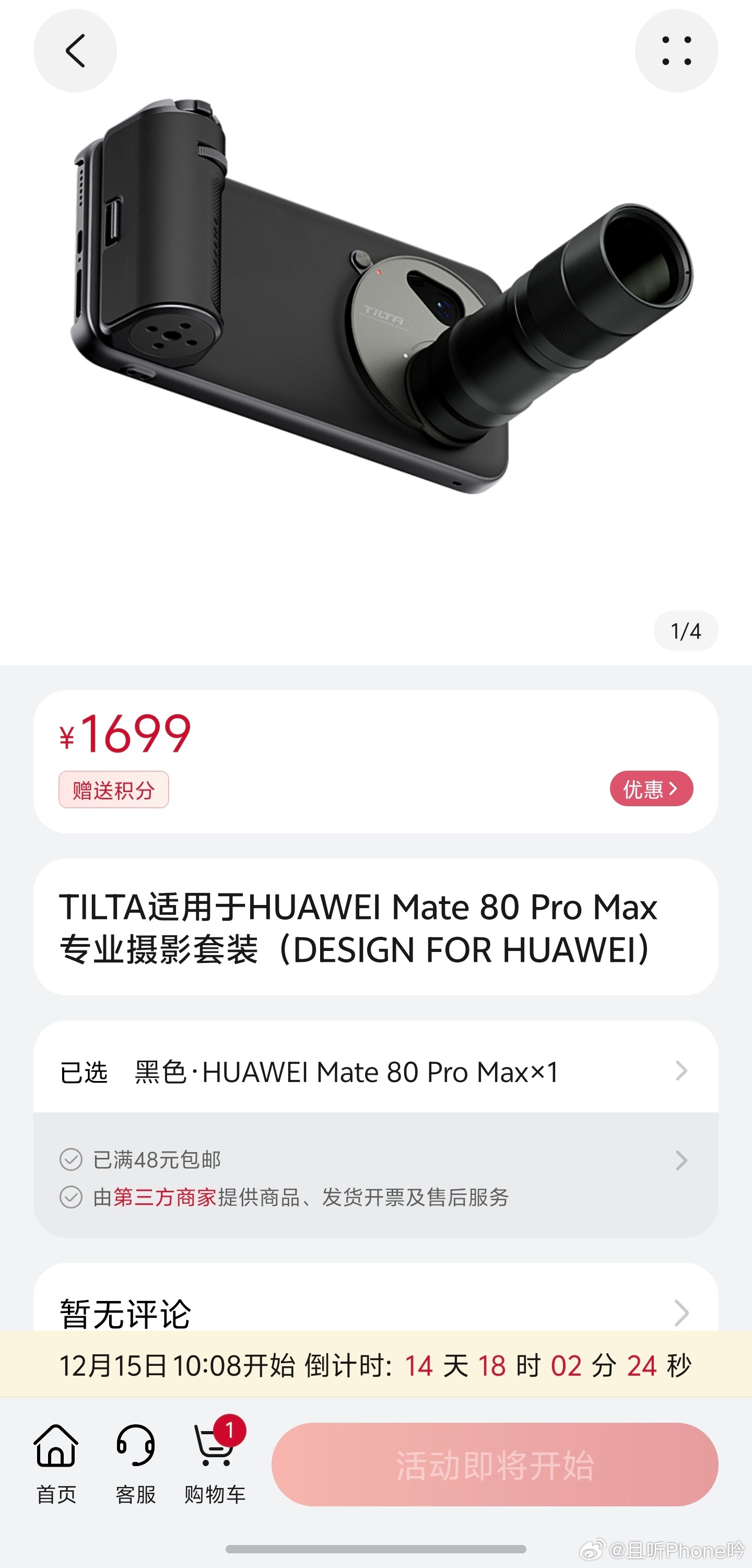 Mate80系列和铁头也出了个增距镜套装(数字版不支持),套装1699。增距镜3.33倍,加手机4倍(90mm),理论最高13.5倍(300mm左右)。对比其它两家增距镜:OPPO(图2):光学230mm,3.28X(70mm为1X)vivo(图3):光学200mm,2.35X(85mm为1X)