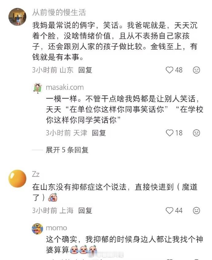 [思考]我外婆就是乳山那边的,有点精神问题的。我被隔代遗传了,超敏体质,小时候就抑郁加人格分裂,家里以为鬼上身……[捂嘴巴]诶……所以我觉得这个说法可能多少有点意思