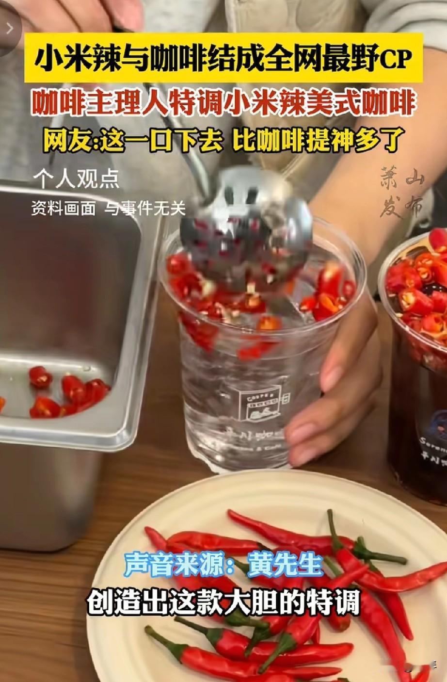 辣椒咖啡,是让黑暗料理变得更黑暗吗? 当咖啡师把小米辣怼进美式的那一刻,我悟了:这哪是“黑暗料理”,分明是“提神界的核爆”。 杯子里堆成小山的小米辣碎,被浓缩咖啡浇透时还在滋滋冒红汁——比《中华小当家》的发光料理更炸裂的,是这杯“辣到灵魂出窍+苦到心肌梗塞”的双重暴击。咖啡师搅和的不是冰块,是我对“正常饮品”的认知底线:你以为喝的是咖啡,实际是“涮火锅剩的汤底加了点速溶”。 网友说“这一口下去比咖啡提神多了”,我严重怀疑是辣得心率飙升产生的错觉——毕竟喝完整个人会处于“嘴在喷火、脑在蹦迪”的亢奋状态,别说上班摸鱼,通宵赶方案都能给PPT写弹幕。 最离谱的是,这杯“辣美式”居然有两种喝法:加冰是“冰火两重天的嘴部酷刑”,热饮是“嗓子眼被红烧的硬核养生”。建议搭配牛奶服用,不是为了好喝,是为了让胃里的“麻辣烫咖啡”能稍微体面点被消化。 所以辣椒咖啡到底是不是更黑暗?答案是:它已经跳出了“料理”的范畴,属于“人类味觉极限挑战项目”——建议直接申遗,项目名就叫《当咖啡放弃治疗后,我们还能喝什么》。 冬日三餐打卡小米辣 咖啡