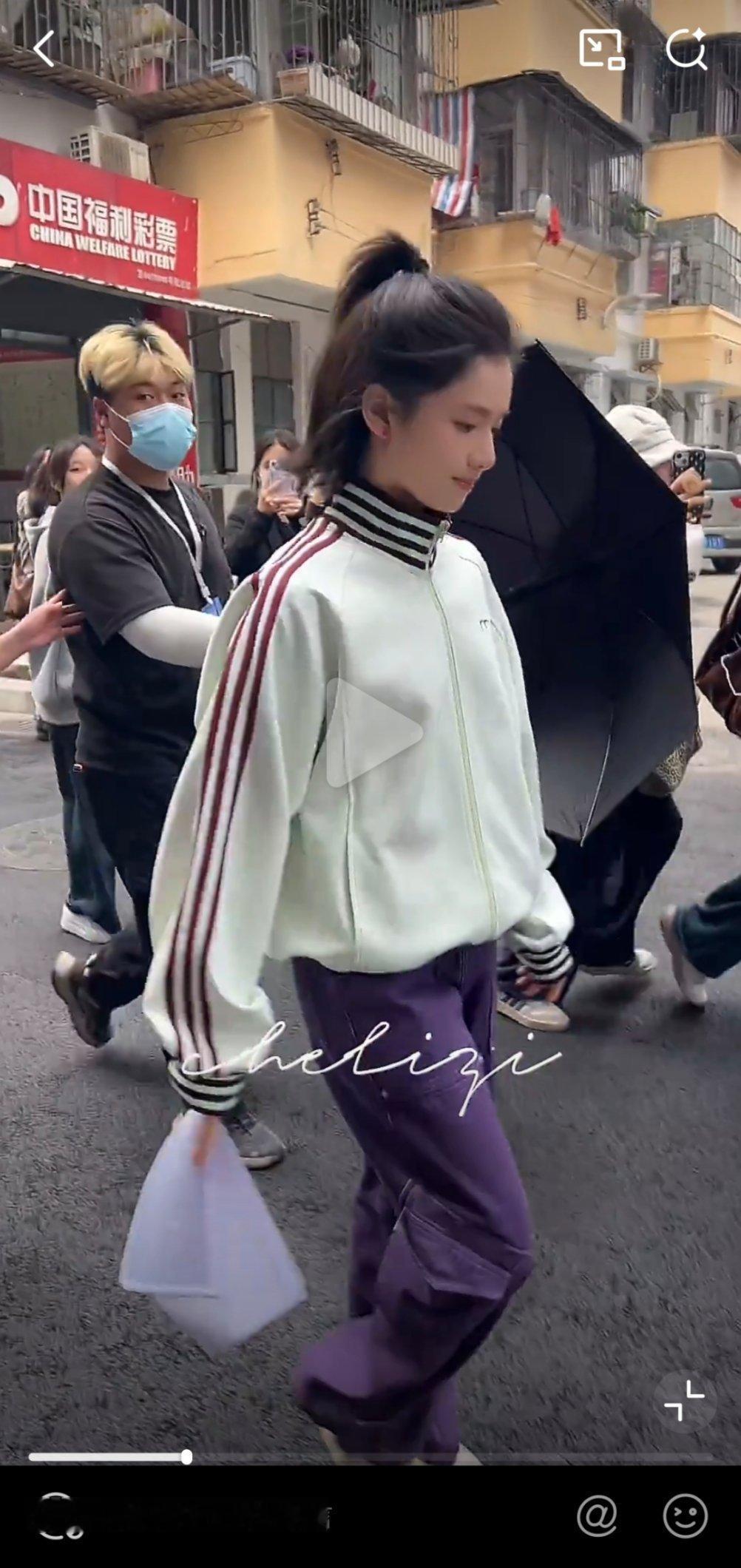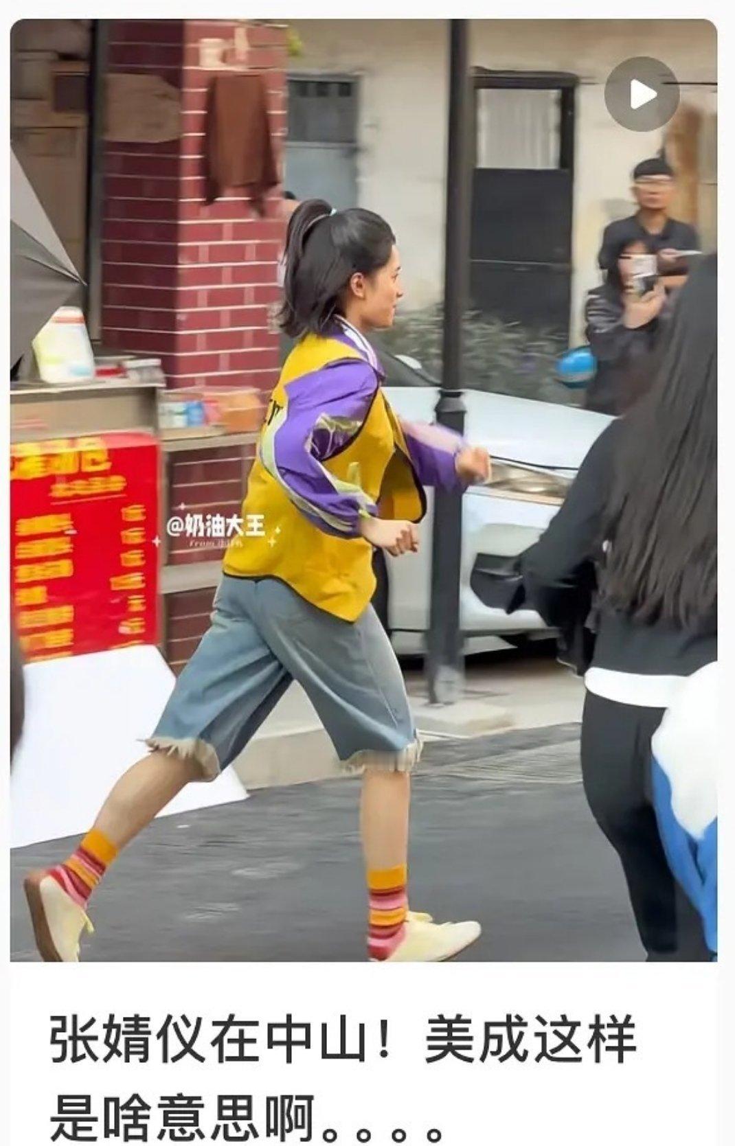 吴艳妮在成都穿着短裤大腿看起来很粗壮,表情自信又张扬