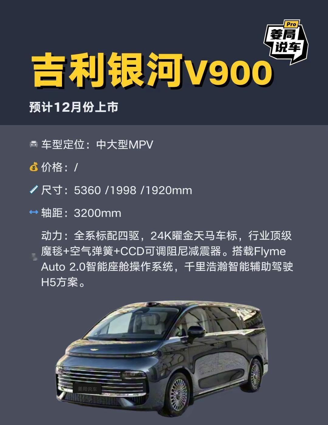 12月即将上市的新车,看看有没有你的款。姜局说车极氪8X银河V900