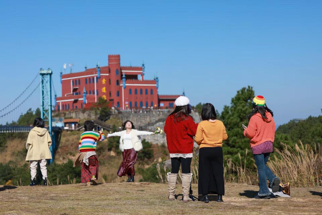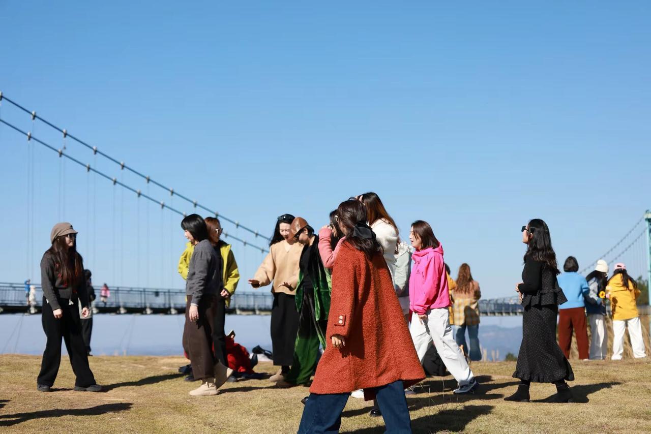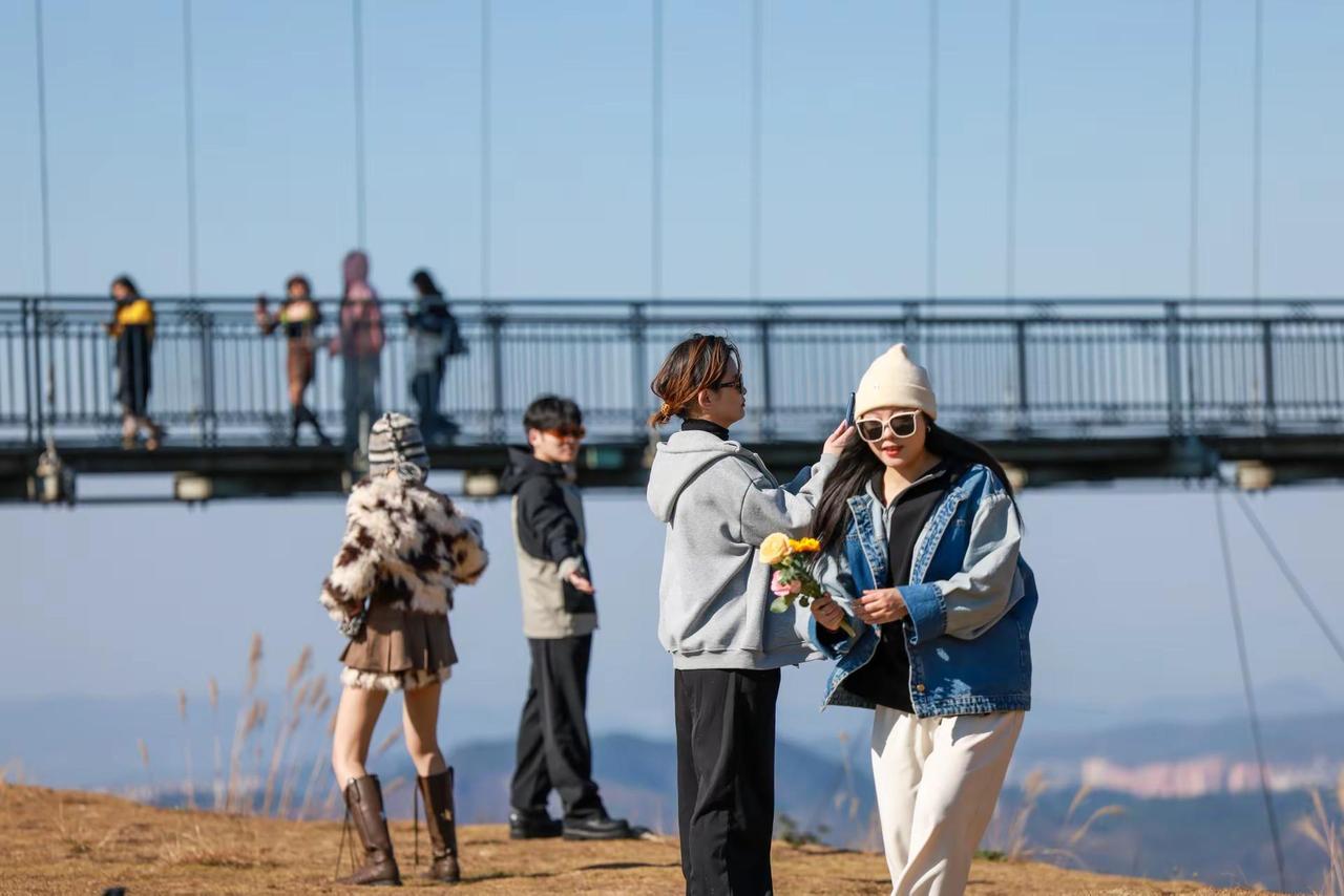 组图|蓝天下的镜头感。 当晴空撞上开阔的高空栈道,风就成了最好的拍照助手。