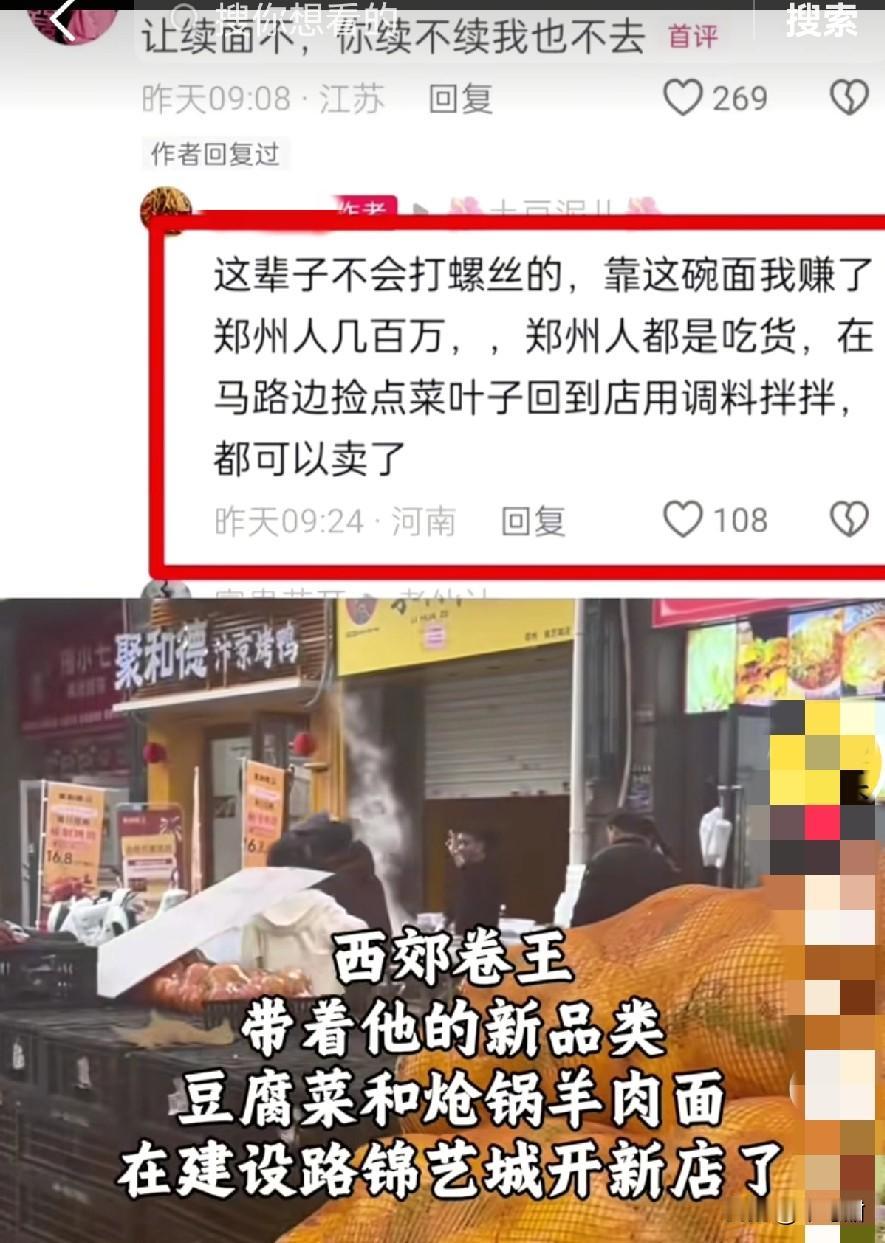 郑州老霍家饸烙面自从续面风波以后,在各地网友的鼎力支持下,终于闭店了。老板经营不说对与错,但是他只是想告诉大家,续面就得一个人续一碗。 这不续面女主没等来老板的道歉,却等来老霍家的饸烙面重新开业了,不过这次他主要经营的是“豆腐菜”,吃豆腐菜可以免费续馒头。 这大哥是真不怕又被网暴啊,续面改续馒头了,这下总没人说他续面小气,就给一筷子的量,续一个大馒头还是给得起的。 有人问续面女主,对于饸烙面新开业有什么看法,当事人表示,他开新店不影响她继续起诉老板道歉一事,因为时至今日,事件发酵,老板关店遣散员工,做尽了被谩骂的后果,可是他还是不道歉当事人的态度,他不承认这件事他做错了。 对于生意人来说,续面就是一个人续一碗。该有的坚持他一直保持着。不得不说这老板有格局,但不多,当初就是续一碗面,直接关闭整个店,如今东山再起,不知道这次能不能良心经营了,毕竟他家的态度和分量,大家是有目共睹的。