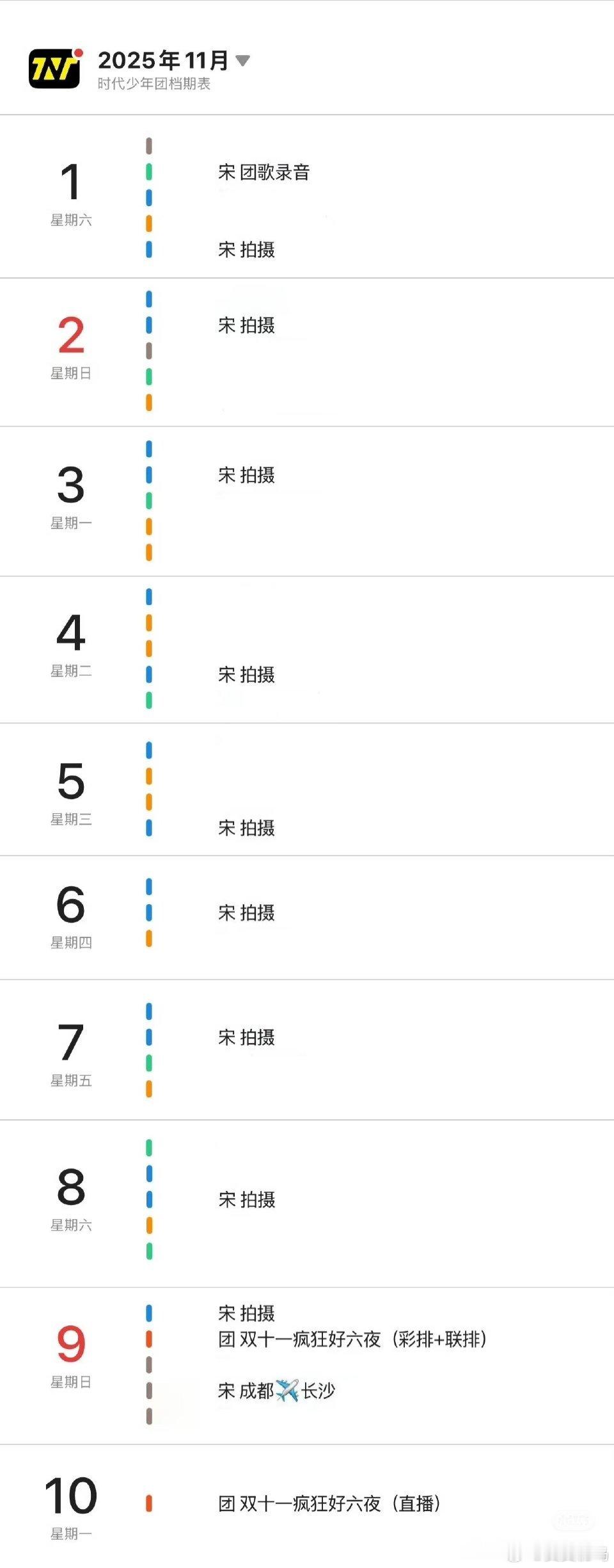 宋亚轩十一月就休息了一天宋亚轩11月行程图来啦宋亚轩11月行程图