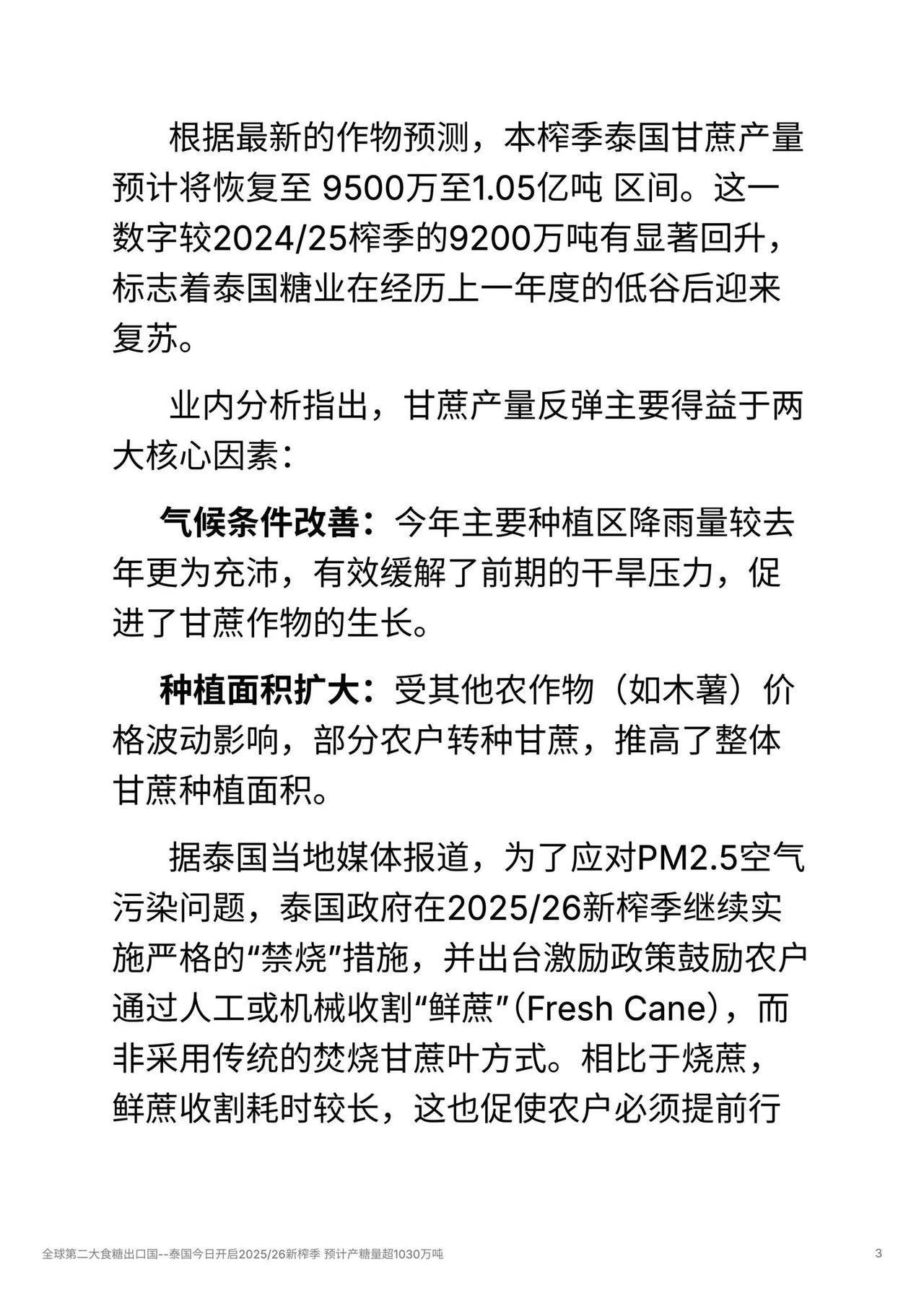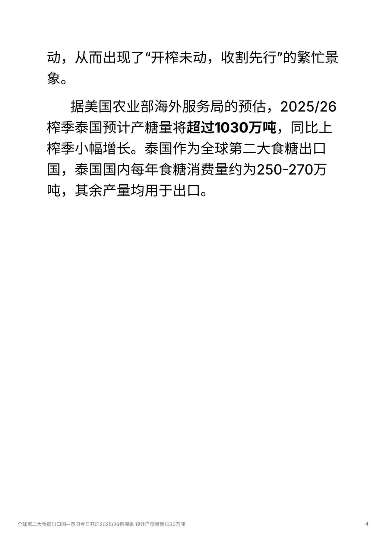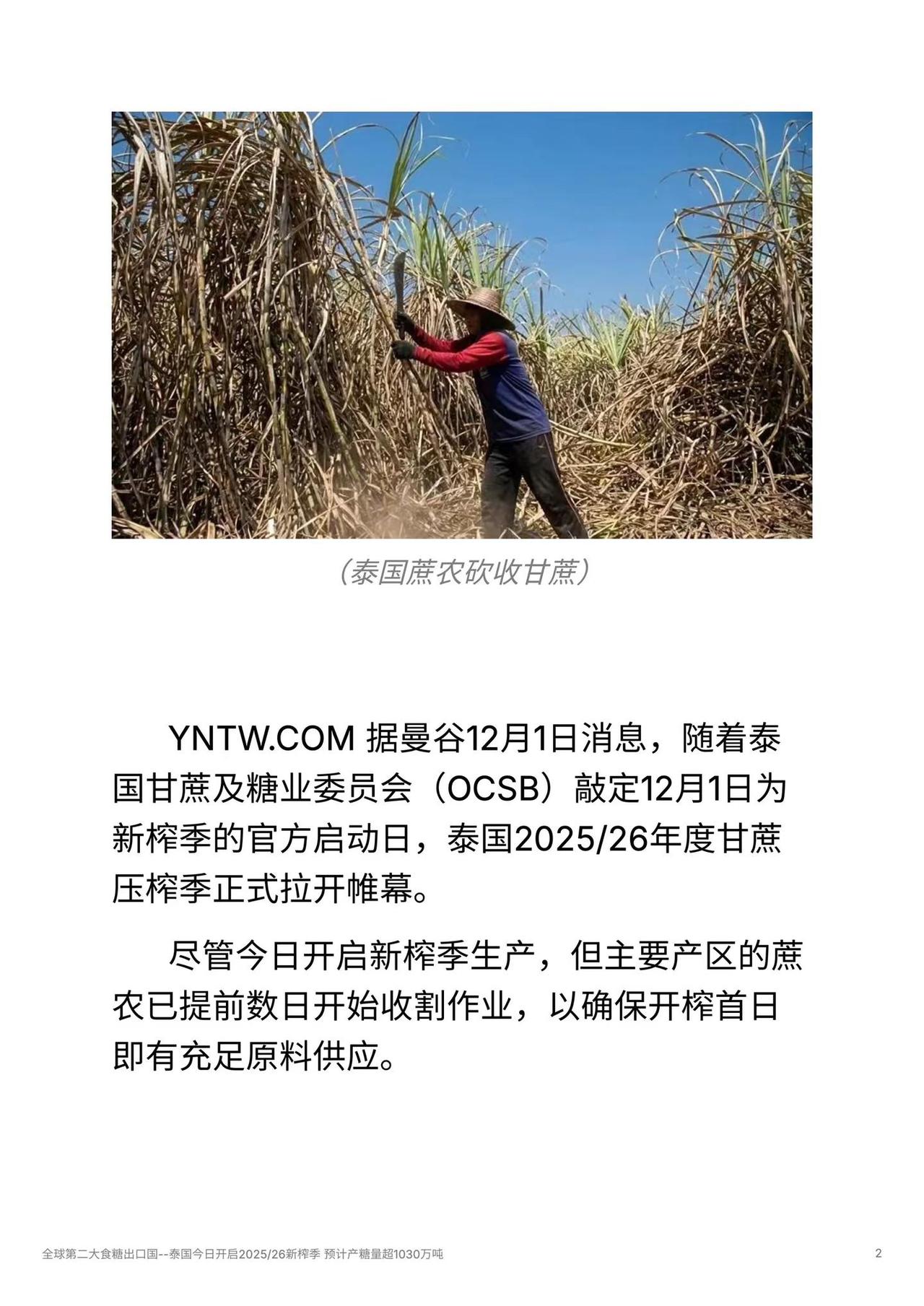 全球第二大食糖出口国--泰国今日开启2025/26新榨季 预计产糖量超1030万