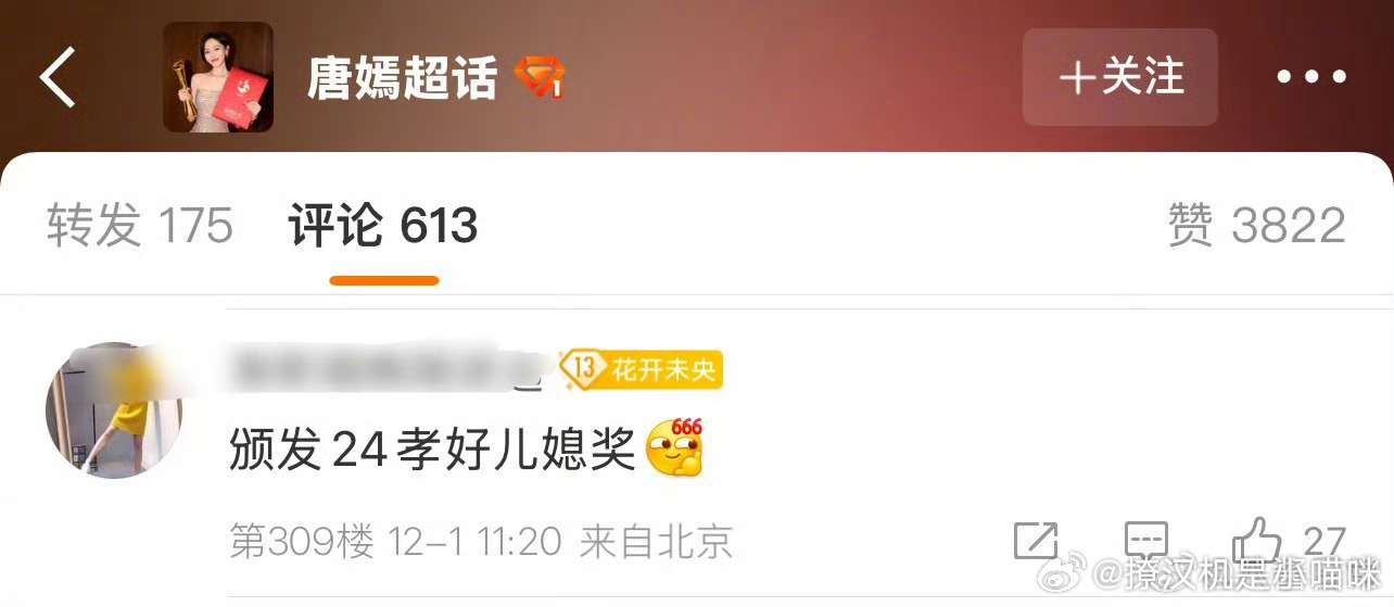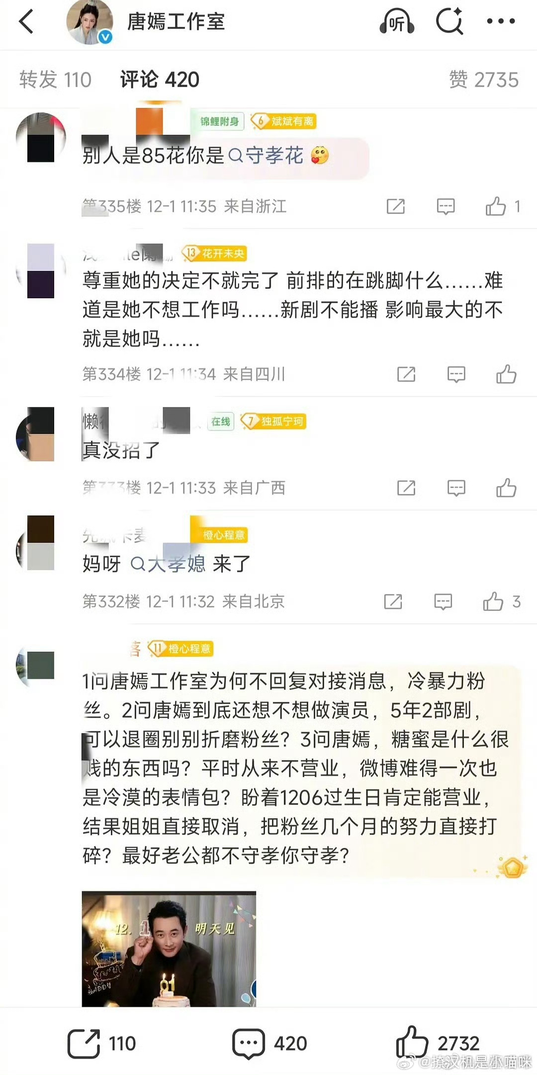 这真的是粉丝吗?唐嫣12月没有行程,就有人喊她24孝大孝媳,还叫她守孝花。这太过