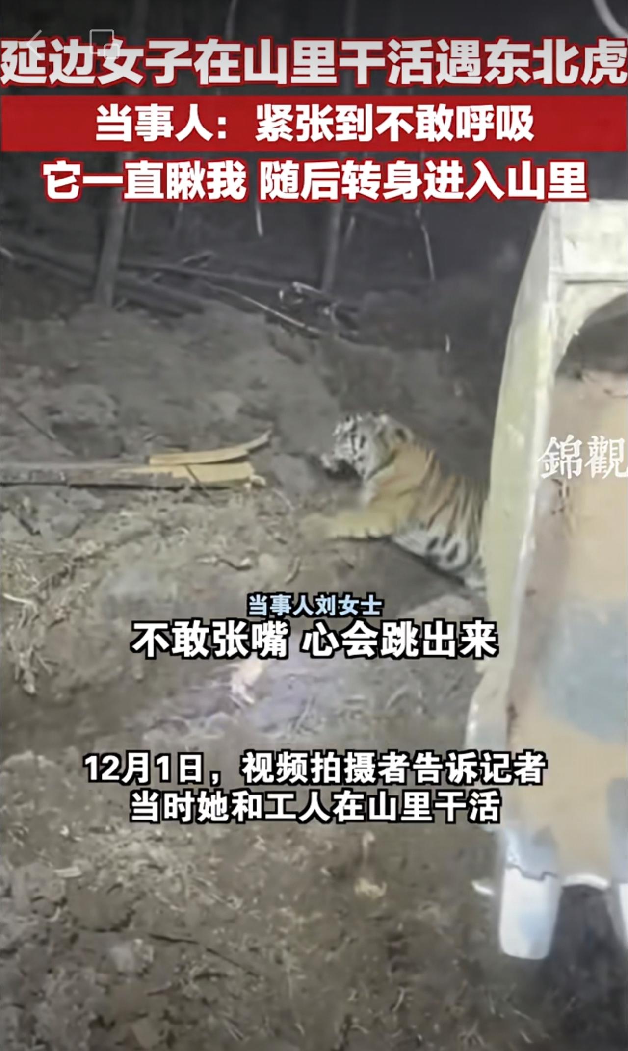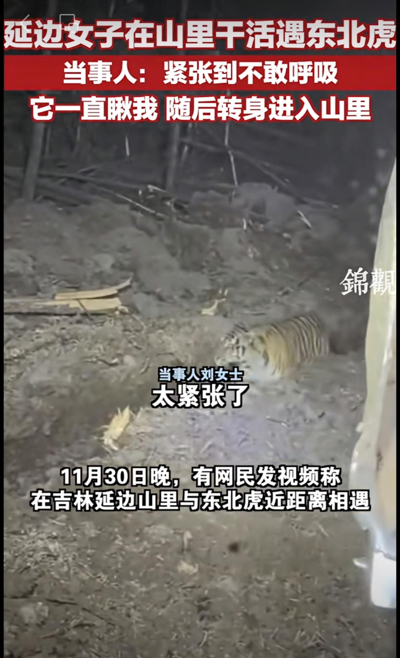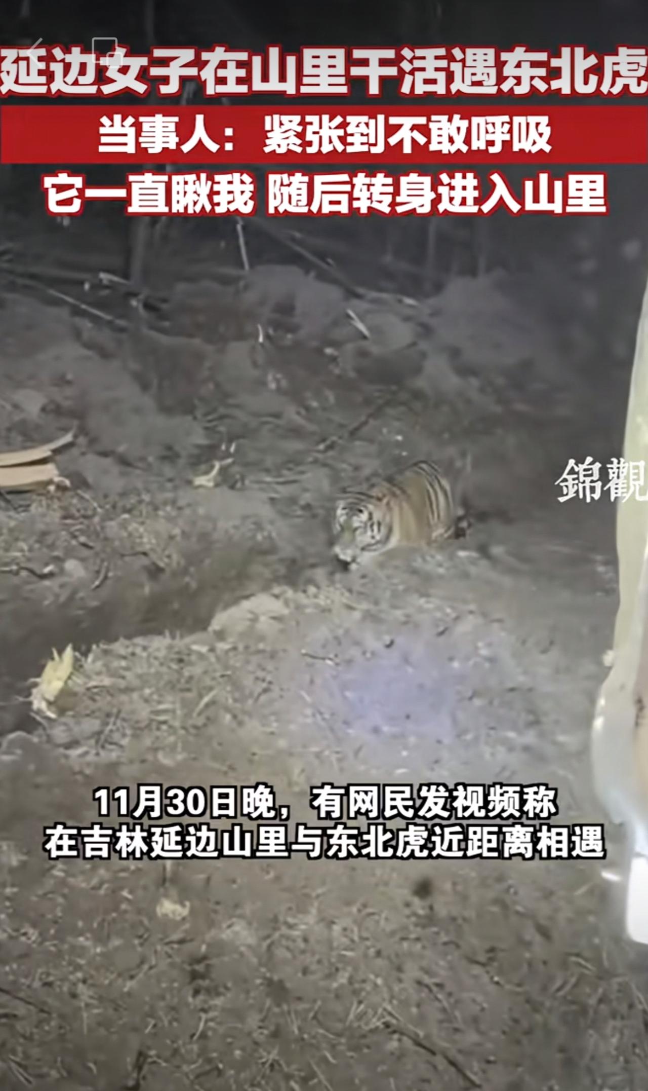 延边女子在山里干活遇东北虎,当事人:紧张到不敢呼吸 ,它一直瞅我,随后转身进入山里 。 网友:东北虎也怕母老虎的[呲牙][呲牙]更多资讯请关注 @锦观新闻